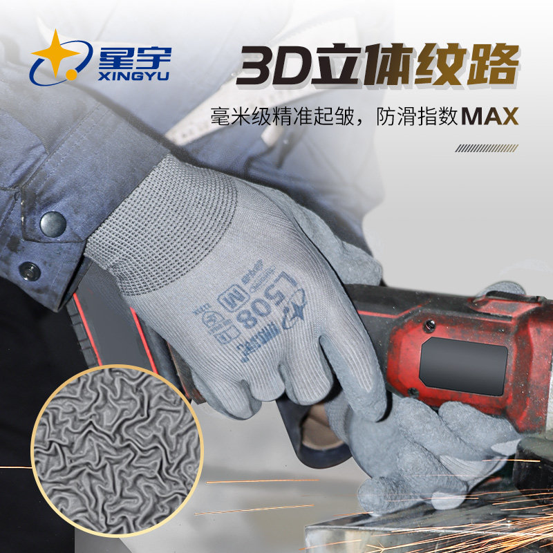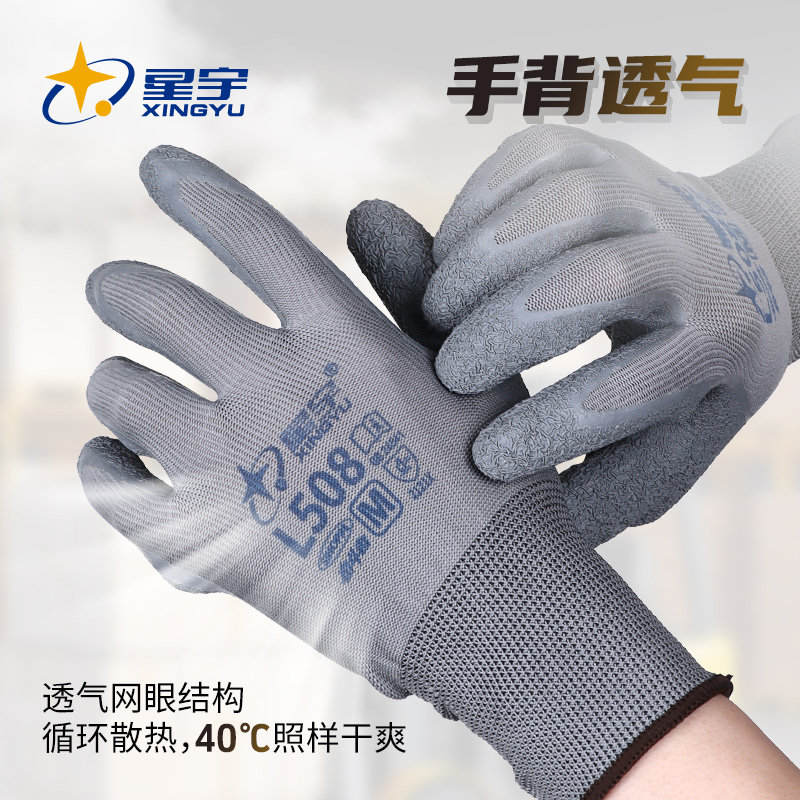 星宇官方正品L508劳保手套皱纹防滑耐磨柔软透气工地干活工作专用