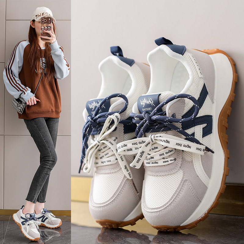 春款阿甘女鞋耐磨户外运动跑步鞋2026新款轻便防滑旅游小白鞋网面
