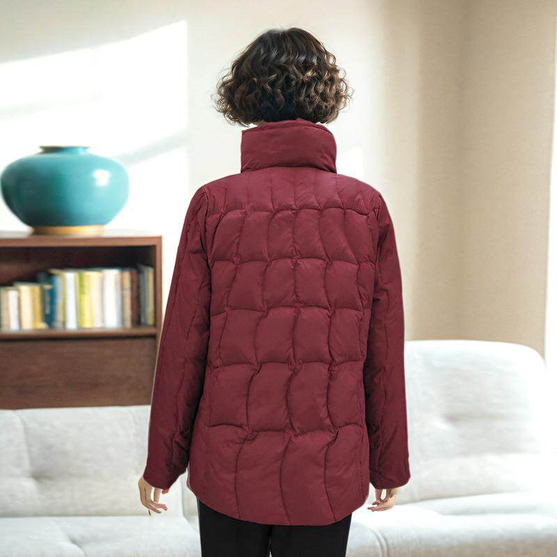 妈妈秋冬装新款羽绒服中年女士中老年女装洋气外套上衣立领无帽