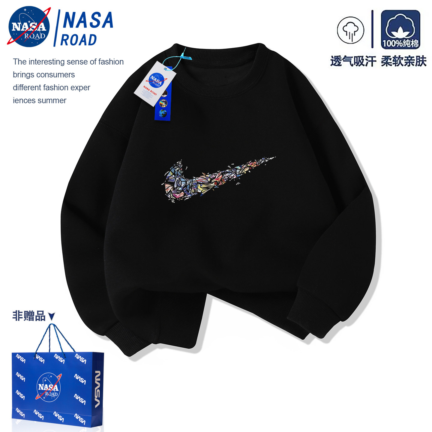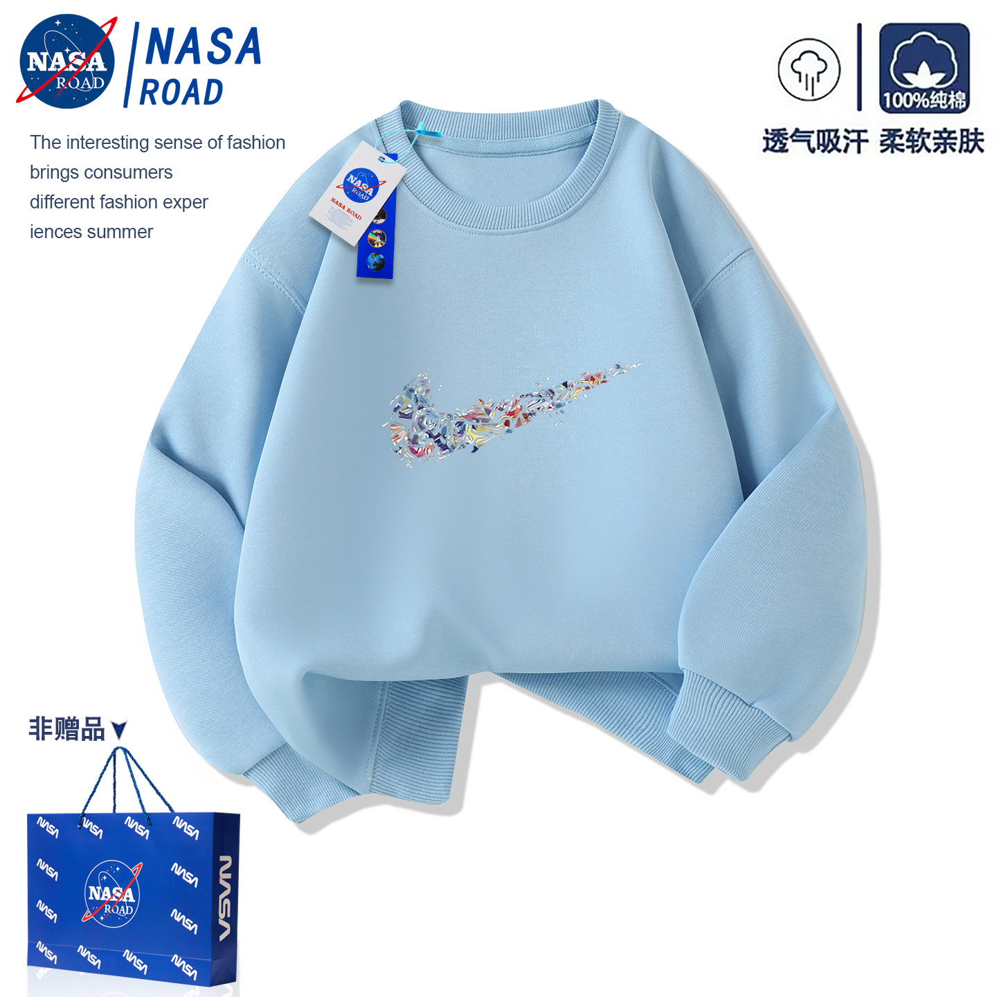 NASA男童加绒卫衣秋冬2025新款潮牌中大童红色上衣儿童本命年衣服