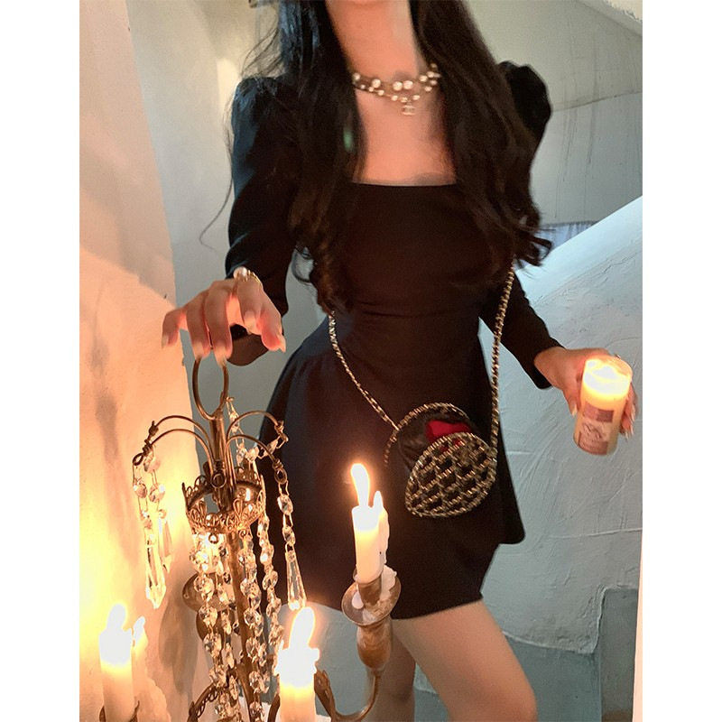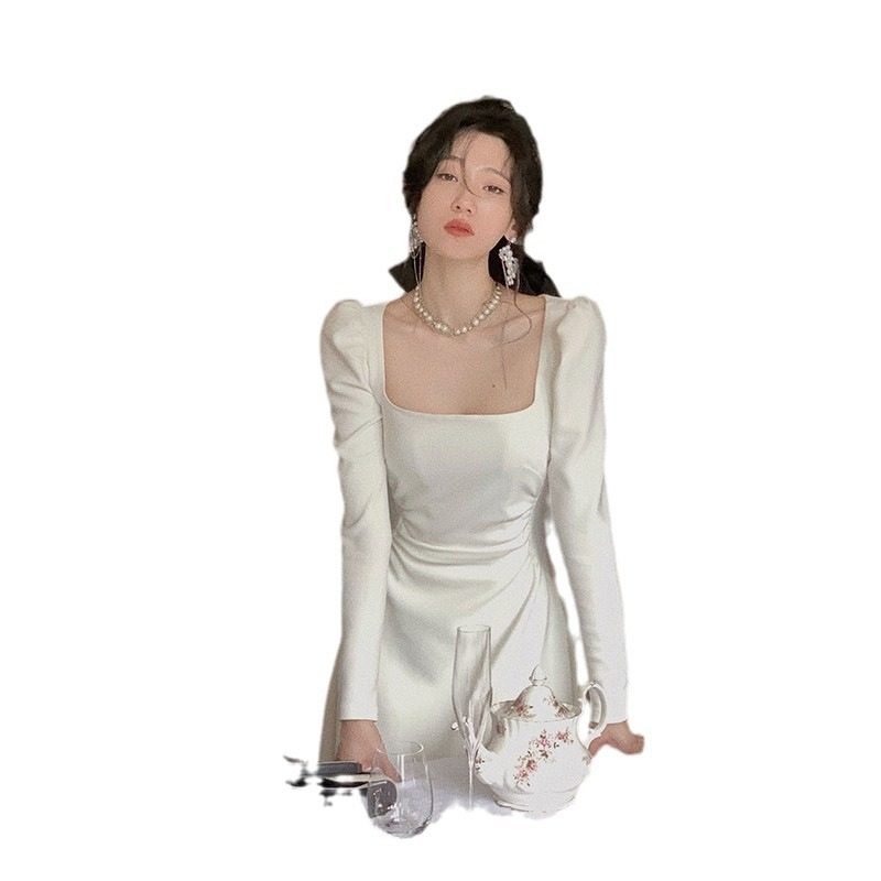 早秋法式气质长裙高端轻奢礼服冷淡高级感小香风白色长袖连衣裙子