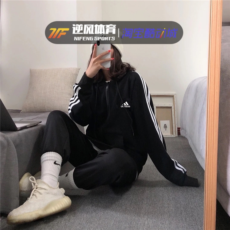 Adidas阿迪达斯外套男女春秋运动服连帽开衫卫衣经典款三道杠夹克