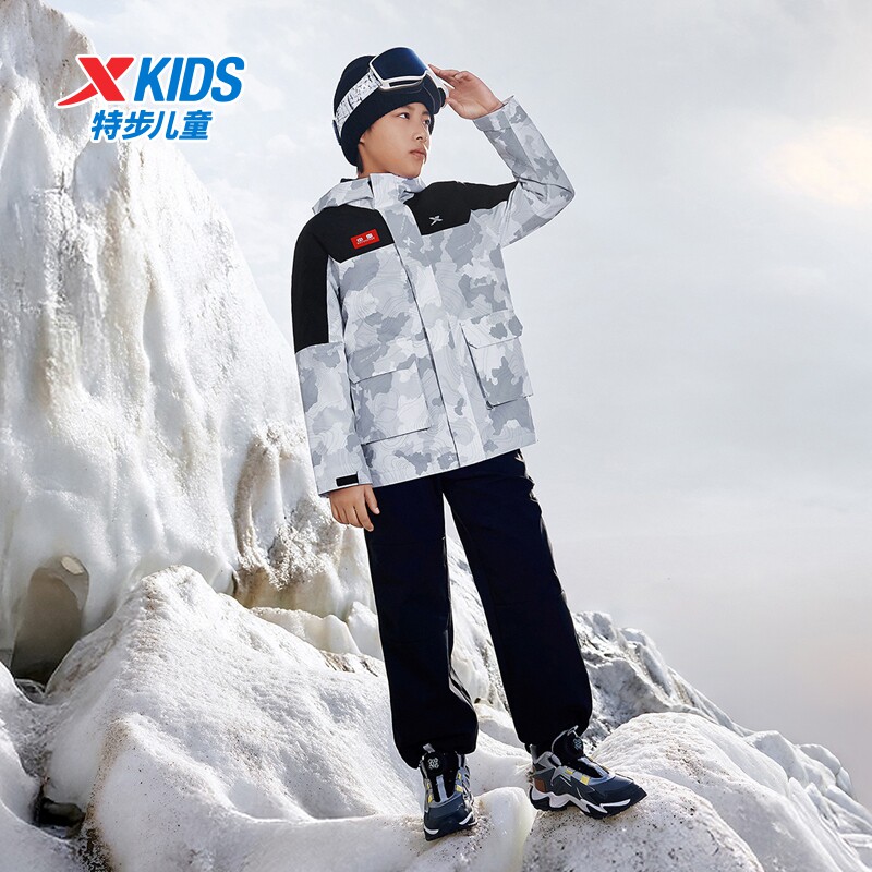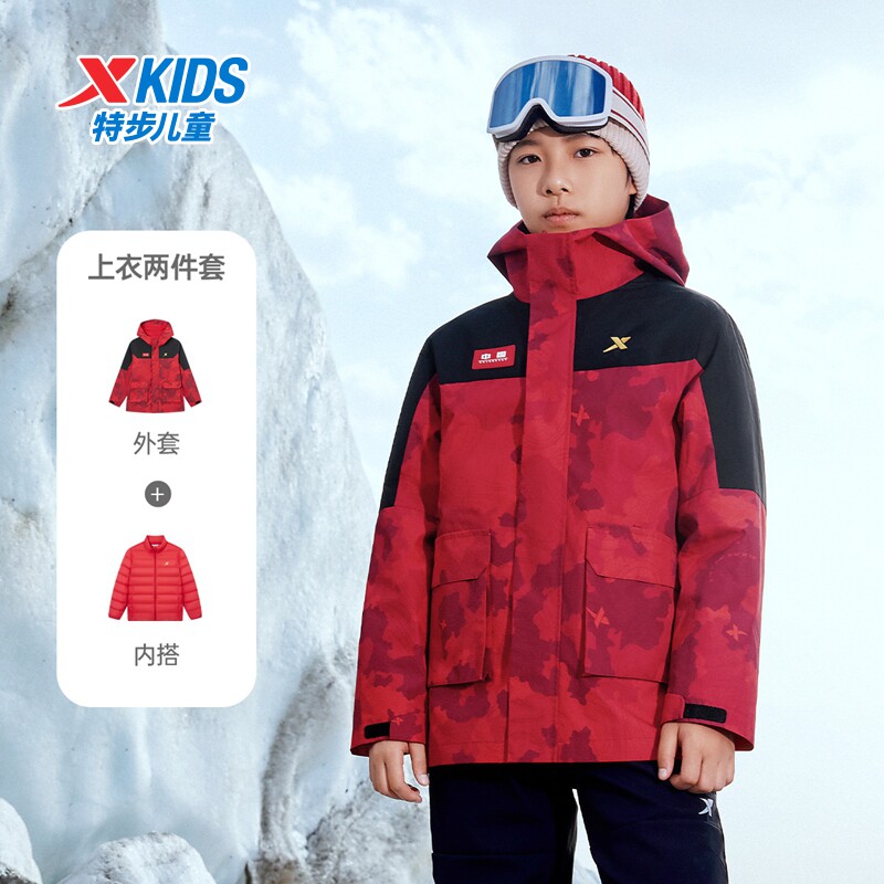 特步童装儿童三合一外套2026冬季新款户外羽绒服保暖加厚上衣服男