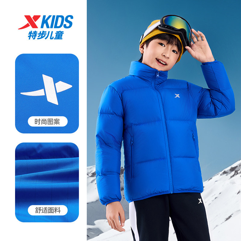 特步童装男童厚款羽绒服2026秋冬新款儿童立领保暖外套防寒服冬装