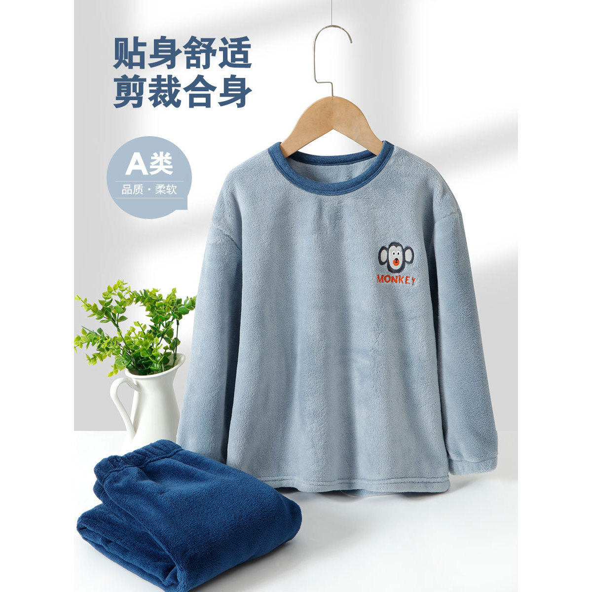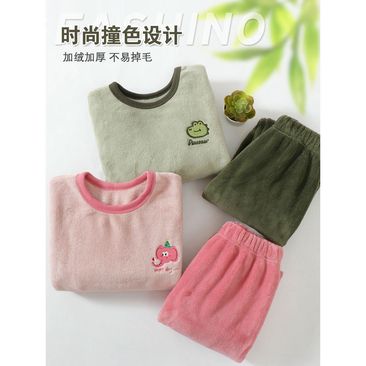 法兰绒儿童睡衣套装韩版宽松男童女童加绒加厚家居服中大童保暖