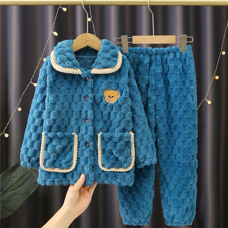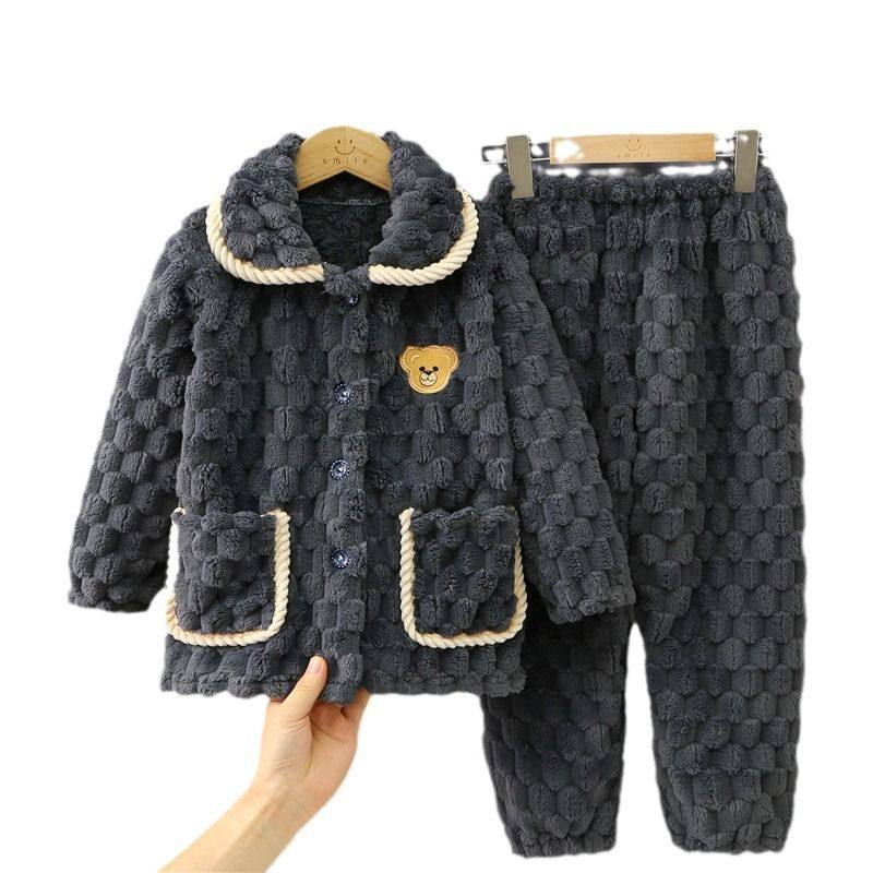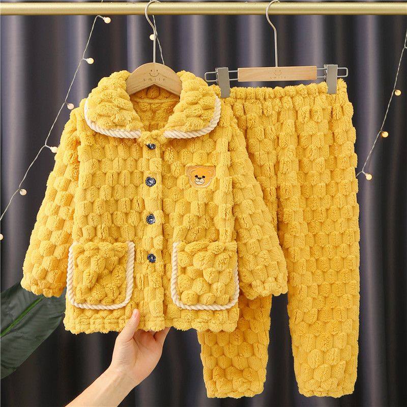 儿童睡衣套装金龟绒男女童加绒加厚家居服套装小女孩童法兰绒套装