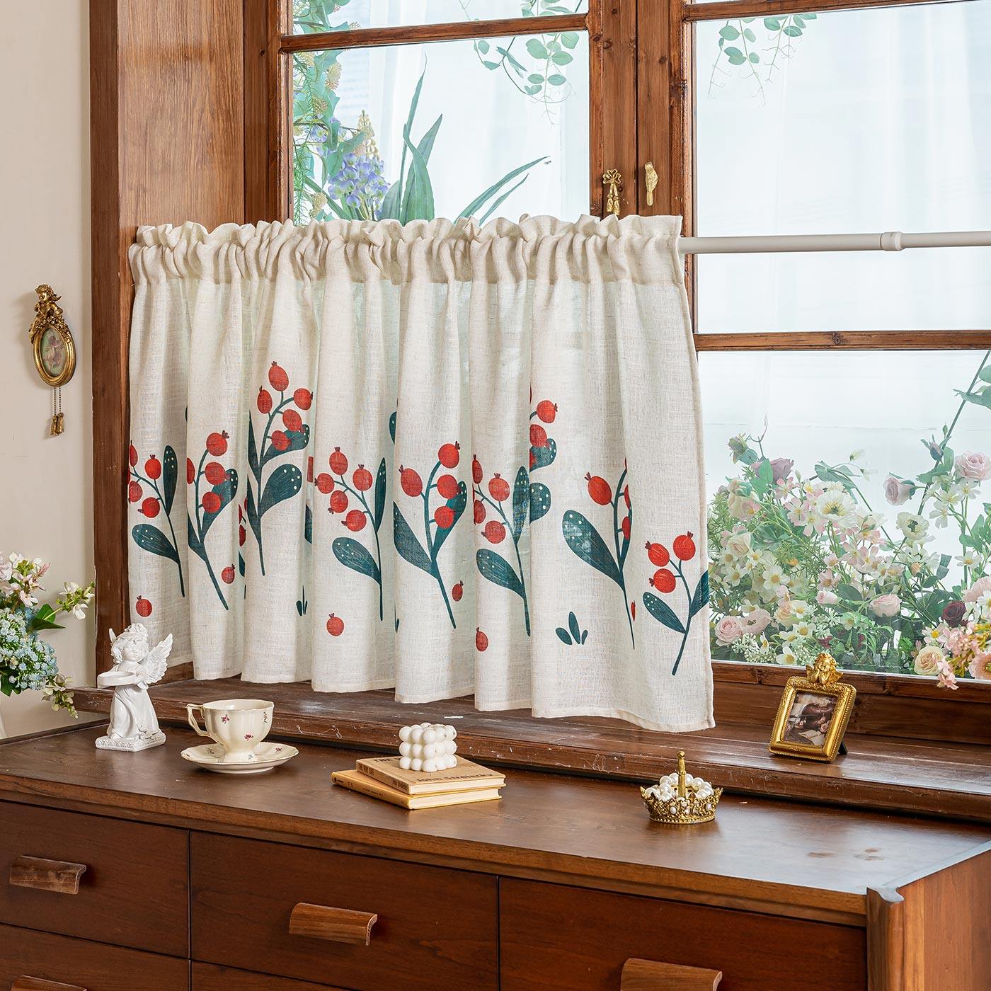 复古风布艺厨卫帘子门帘隔断防尘隐私半帘短帘田园美式穿杆褶皱