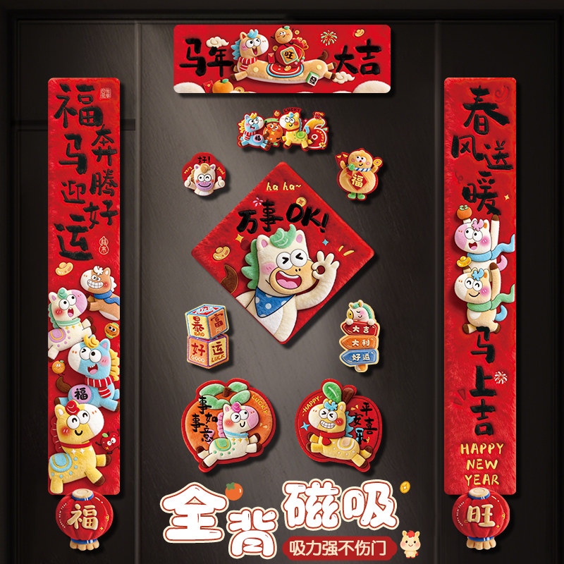 对联春联2026年新款马年全磁吸福字门贴高端过年创意入户门装饰品