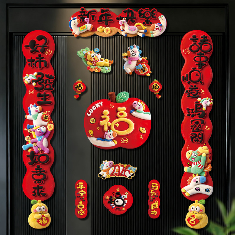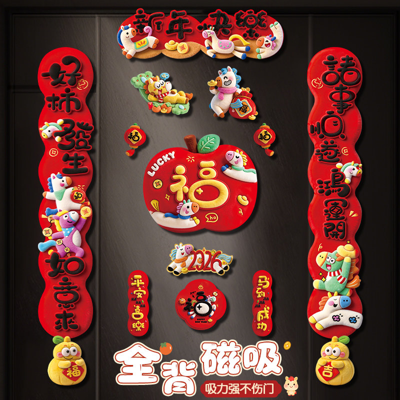 马年对联春联2026年新款创意门贴新年全磁吸高端入户门福字装饰