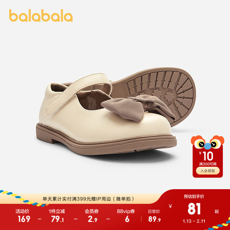 巴拉巴拉童鞋女童公主鞋复古文艺小皮鞋春秋儿童表演鞋蝴蝶结鞋子
