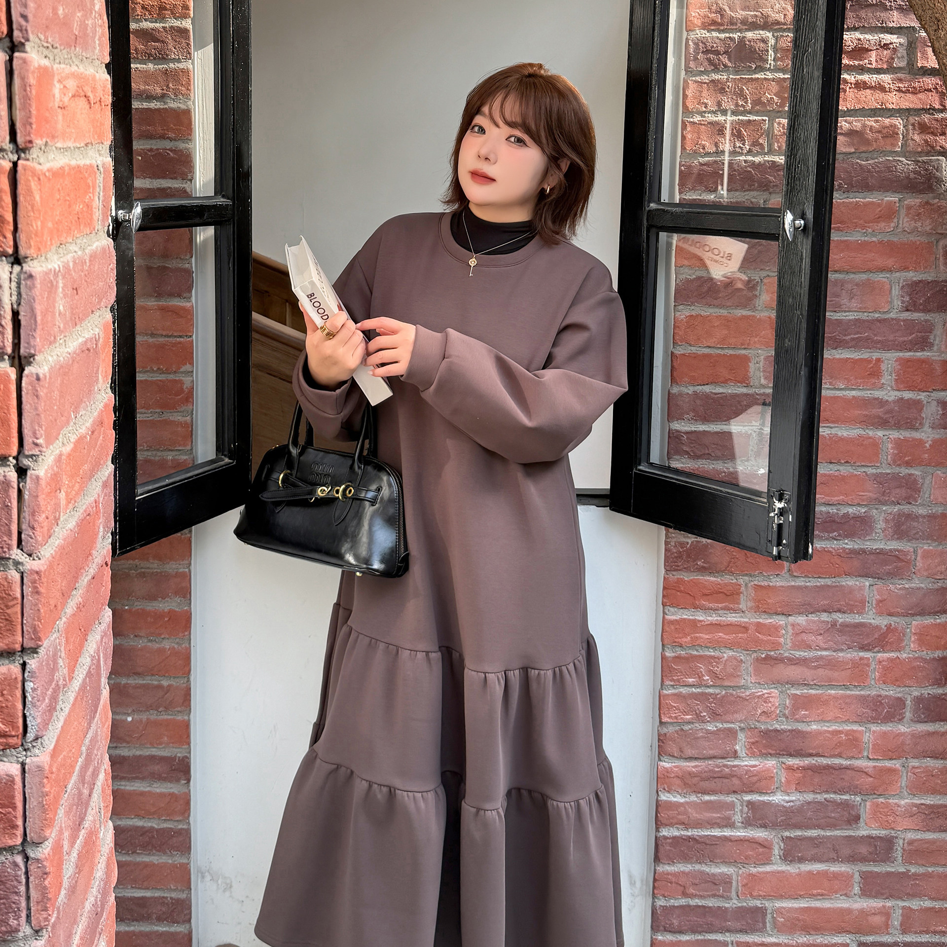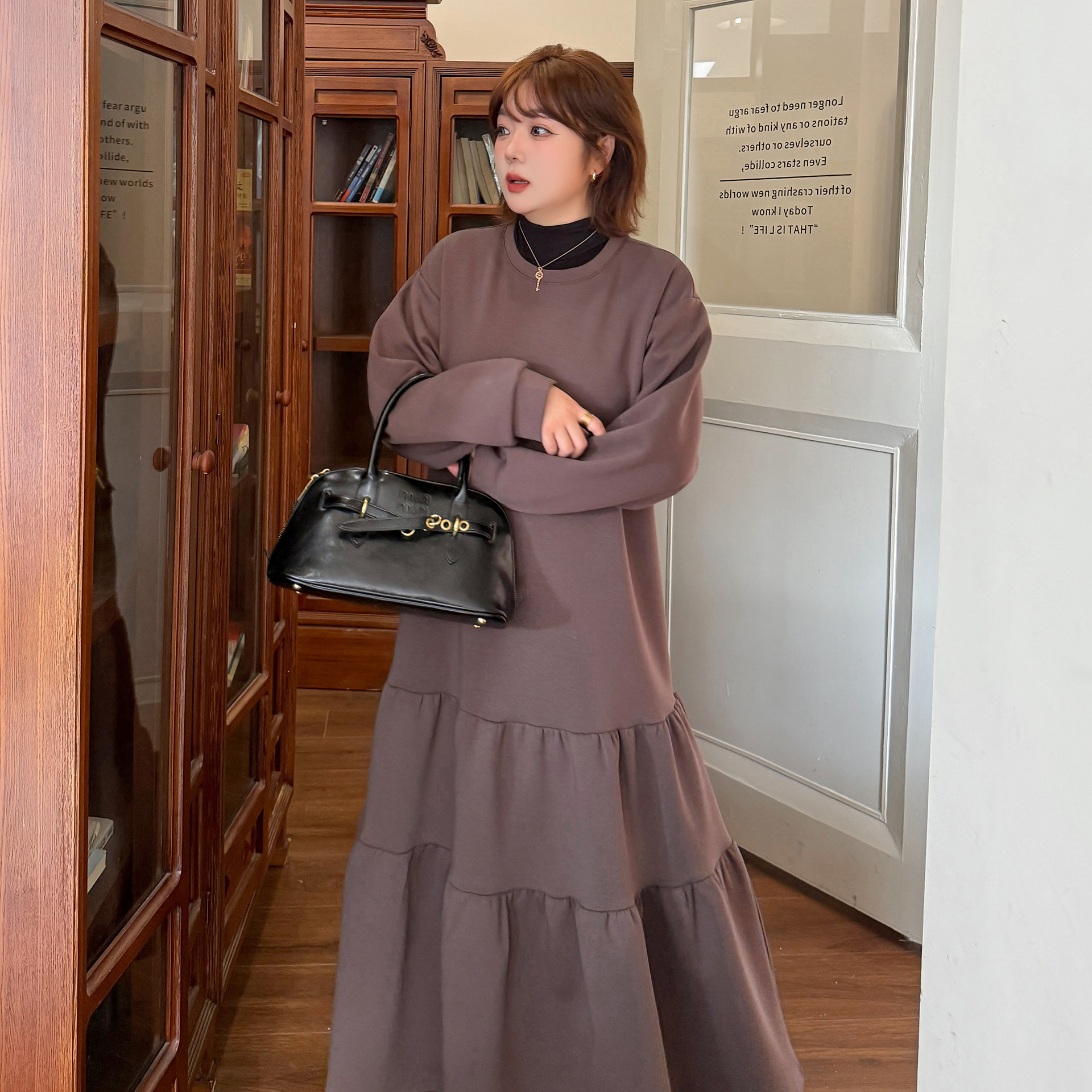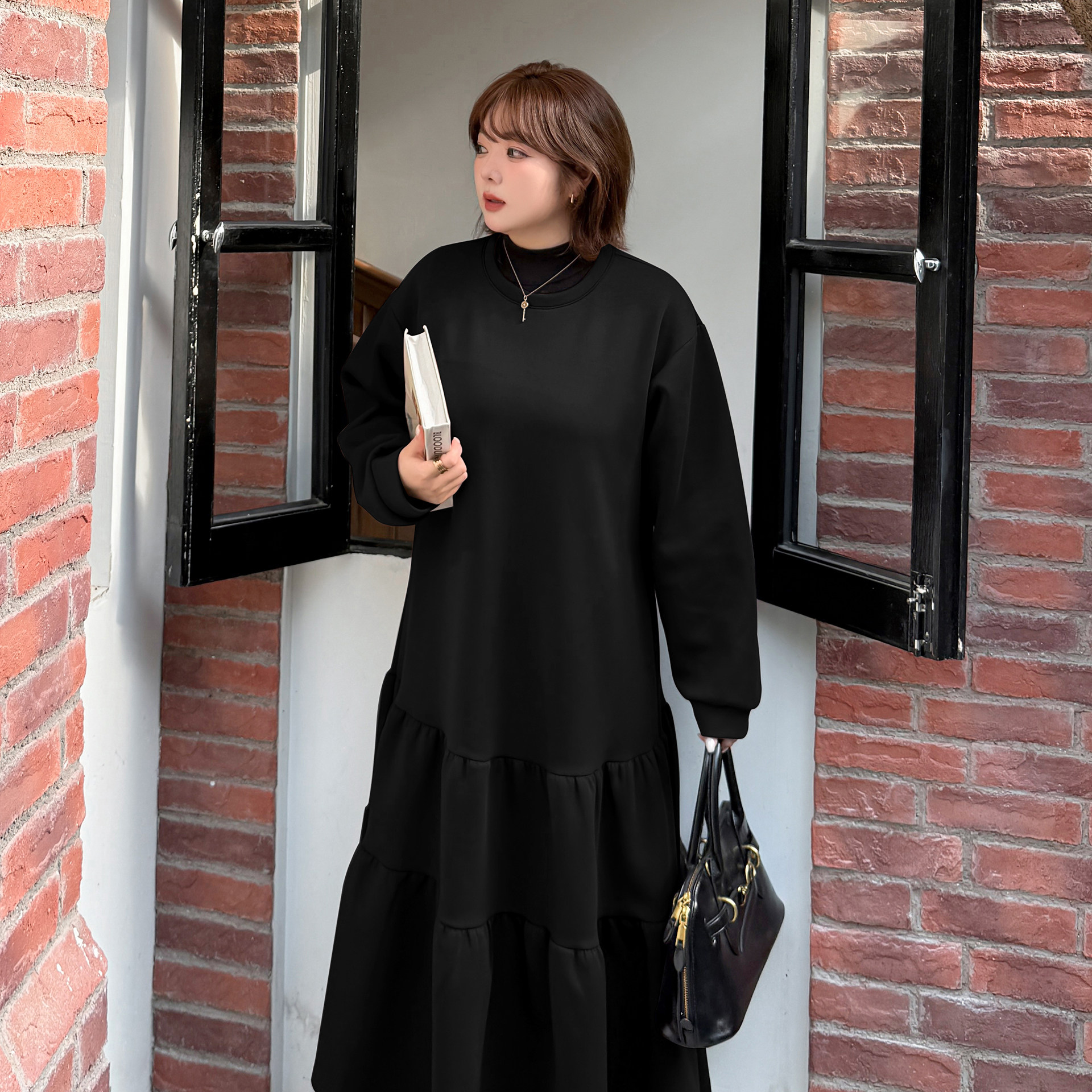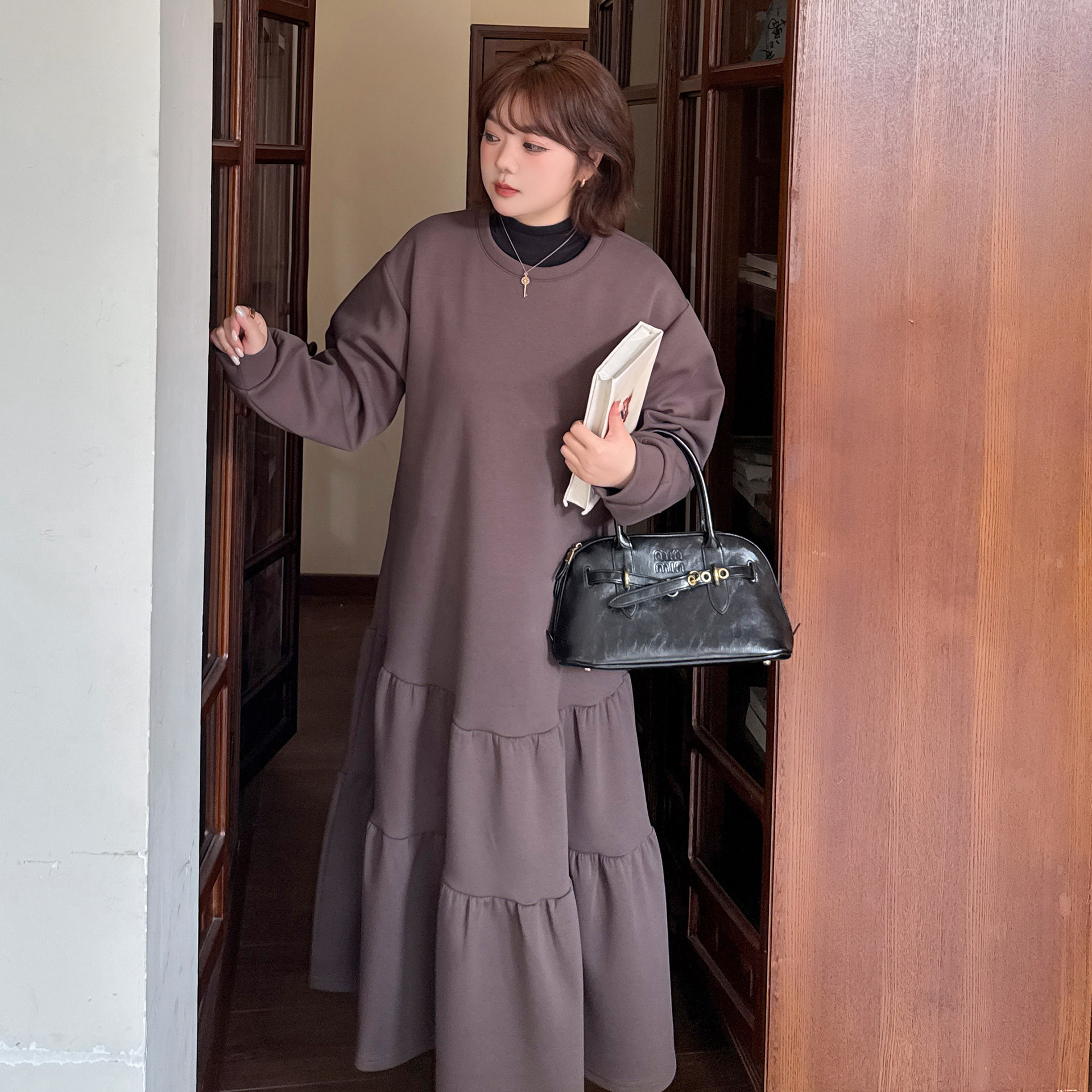 200斤胖mm大码连衣裙女2025冬季新品宽松显瘦蛋糕裙加厚保暖长裙