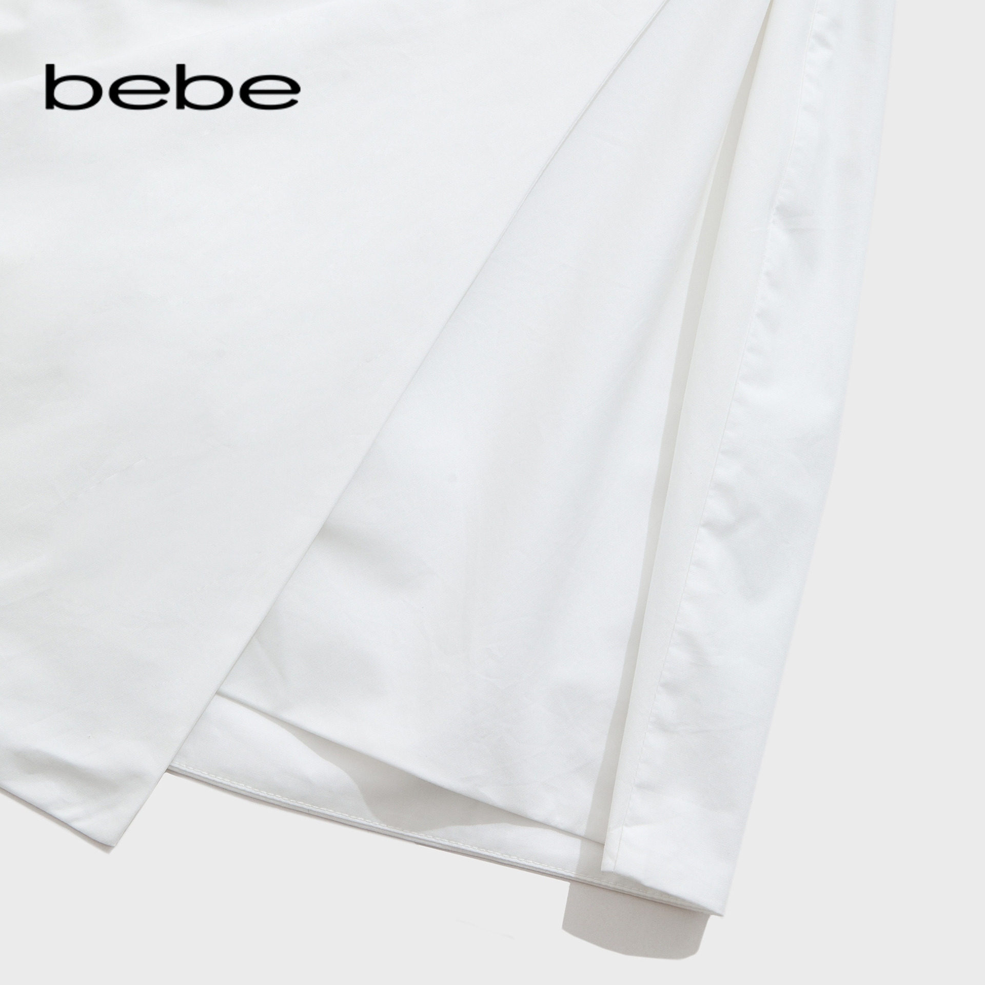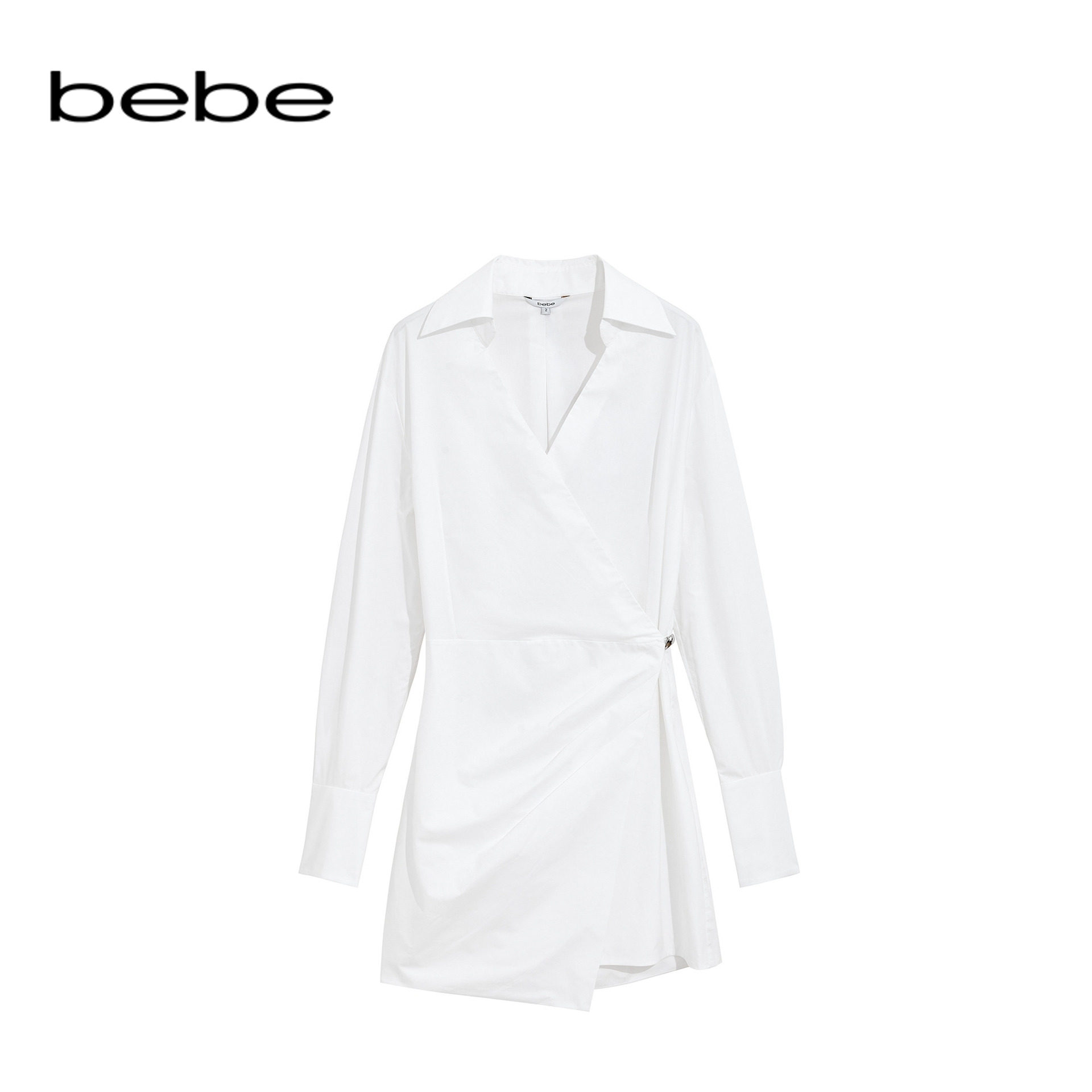 bebe2025秋季新款女士高智精英感白色长袖交叉领衬衫连衣裙350004