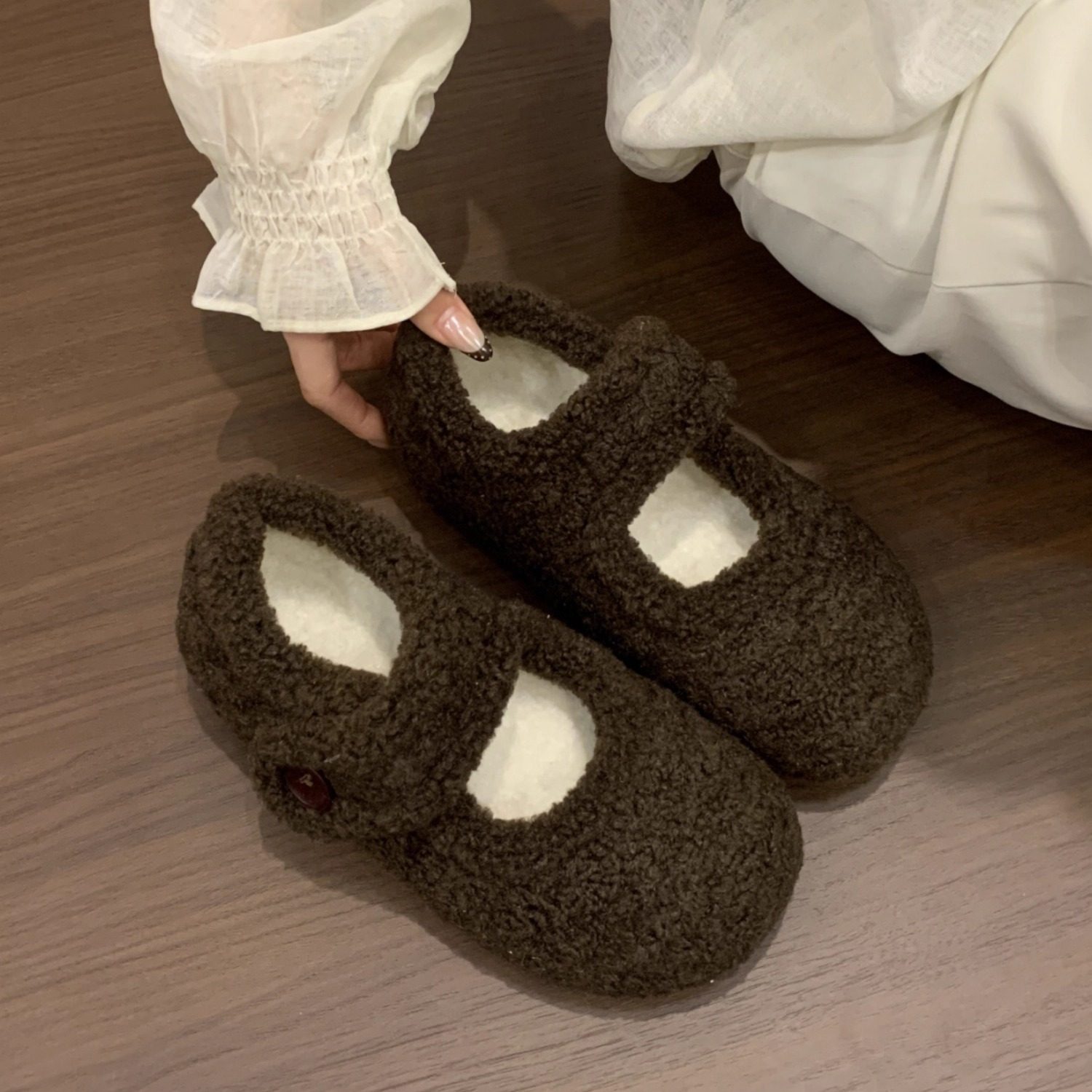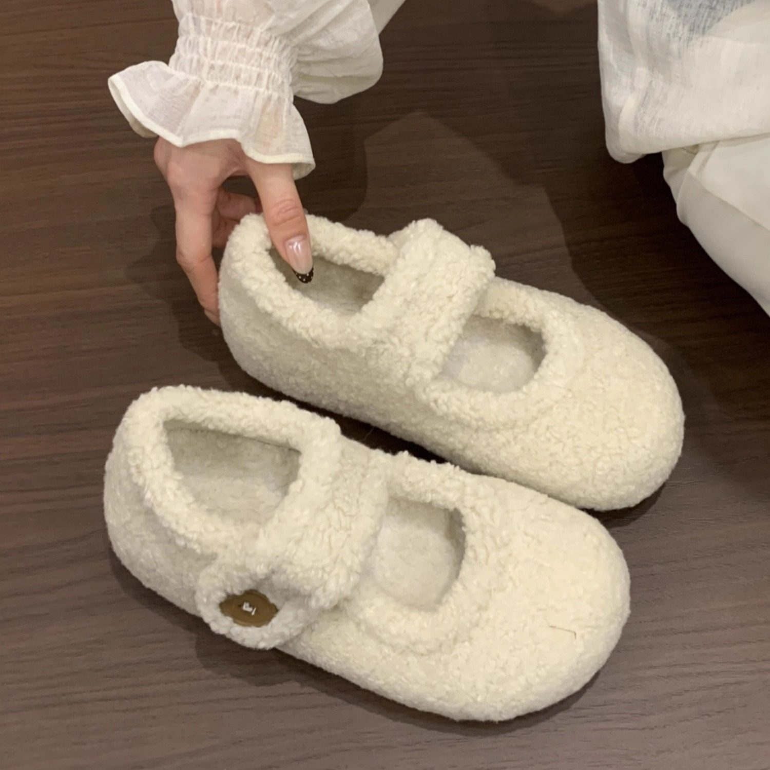 白色加绒保暖防滑毛毛鞋女2025新款冬季厚底内增高玛丽珍女鞋棉鞋