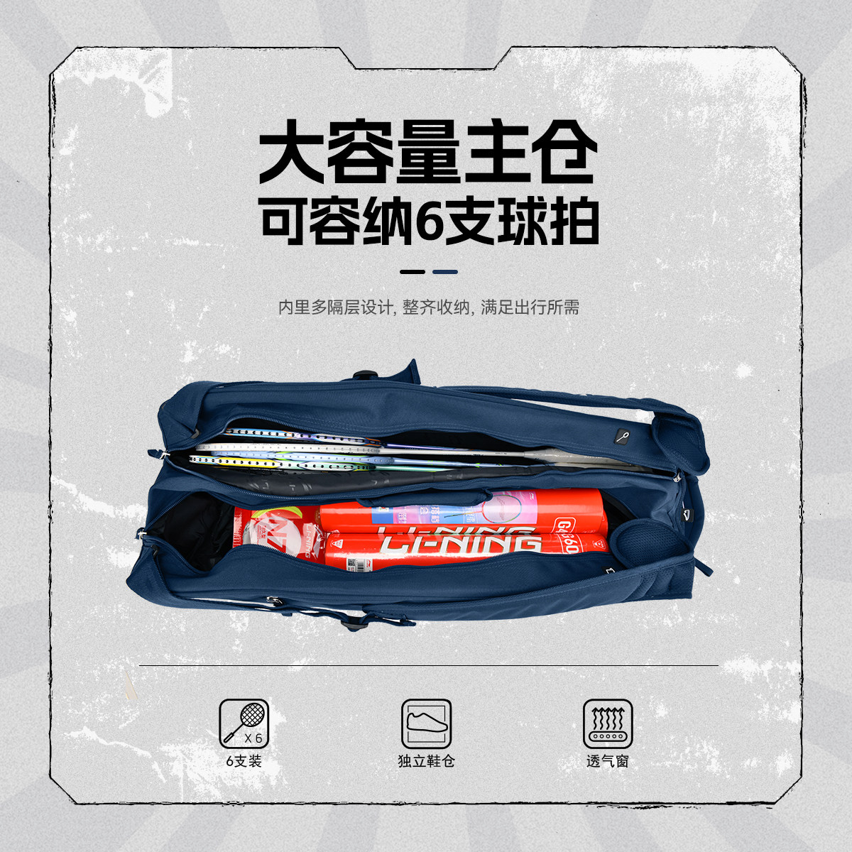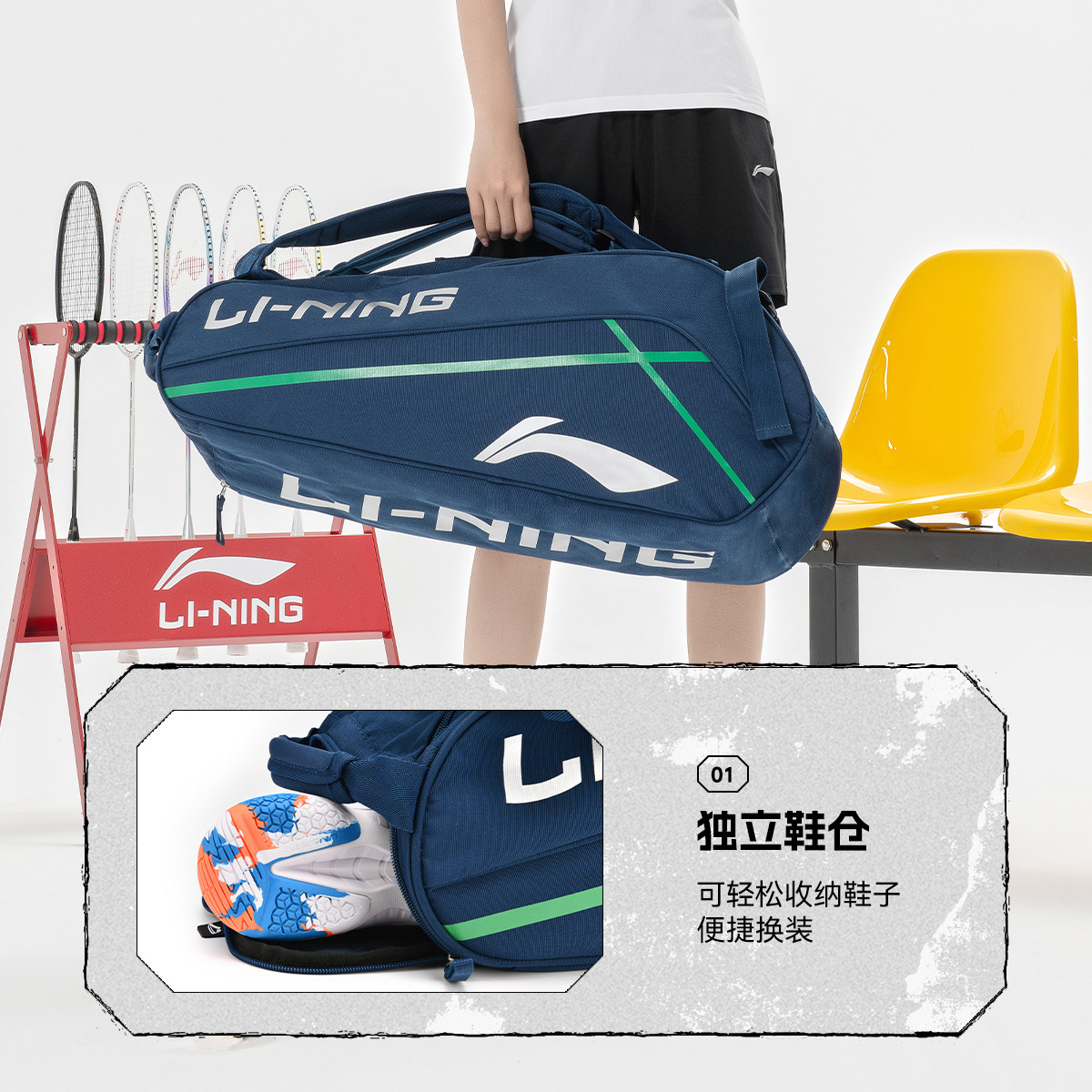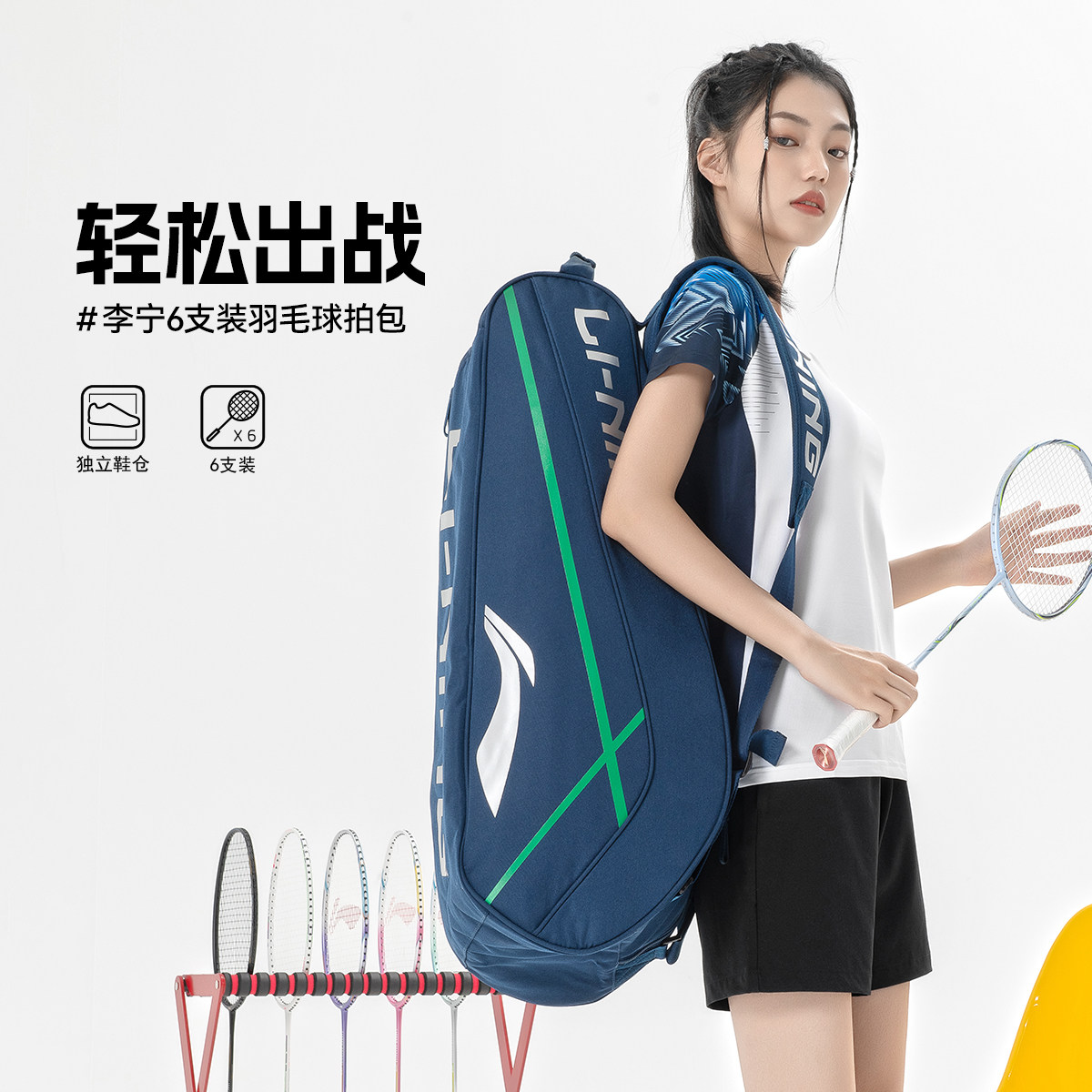 李宁新款羽毛球包单肩手提男女款便携收纳大容量专业球拍包三支装