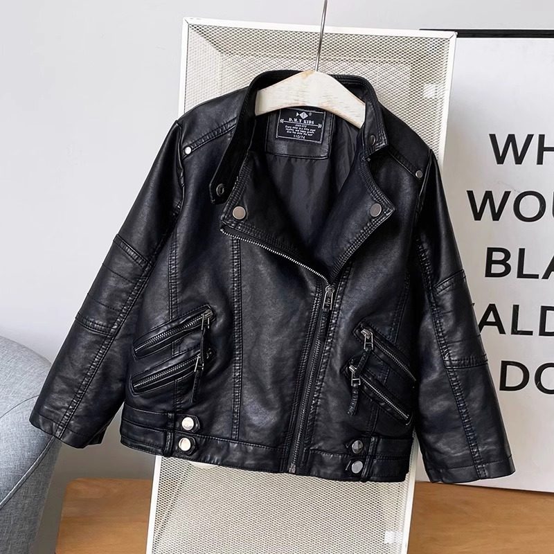 女童机车皮衣2023秋季新款韩版洋派中大童男童儿童真皮夹克外套潮