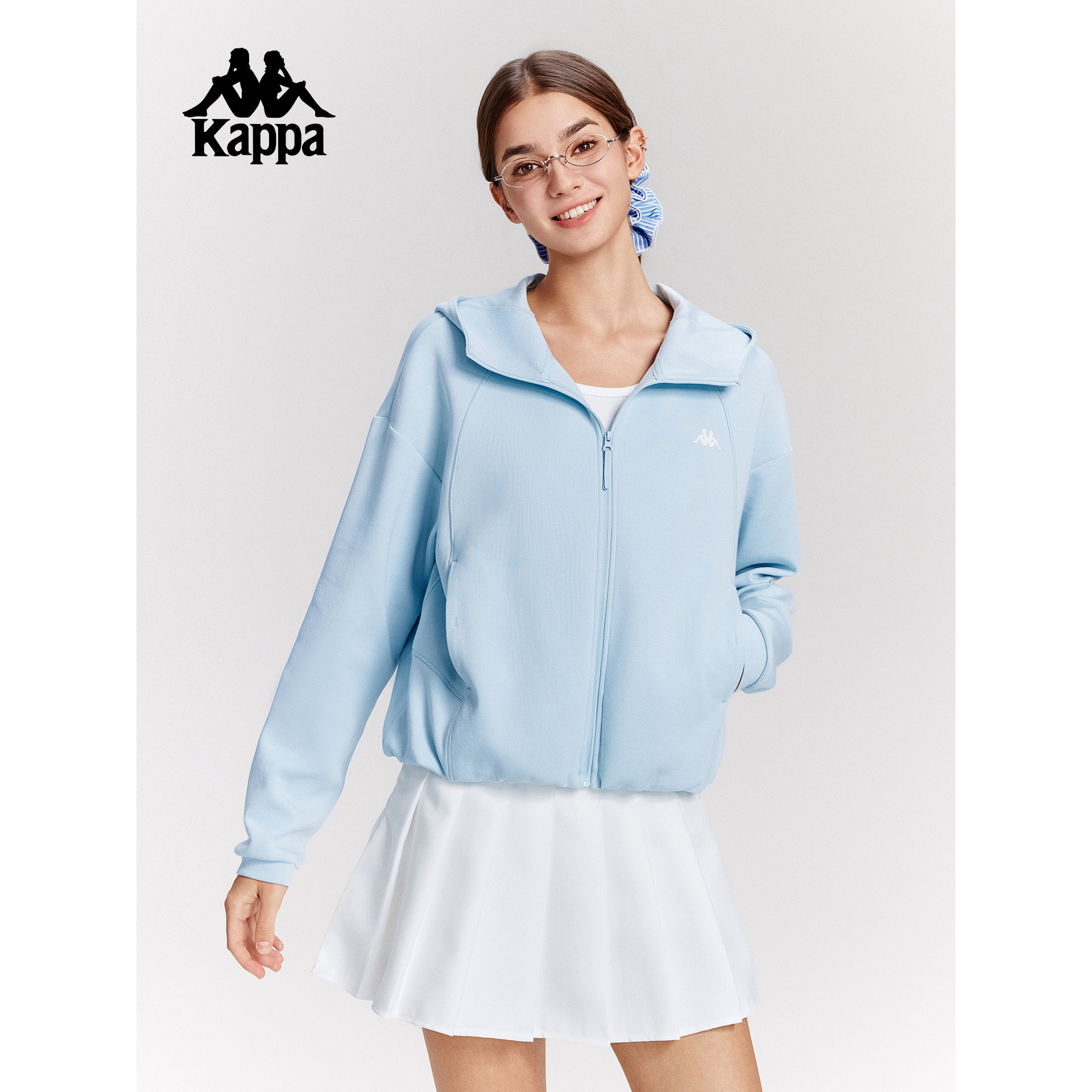 Kappa卡帕背靠背2025新品秋季弹力针织开衫连帽运动卫衣外套女款