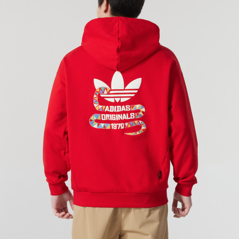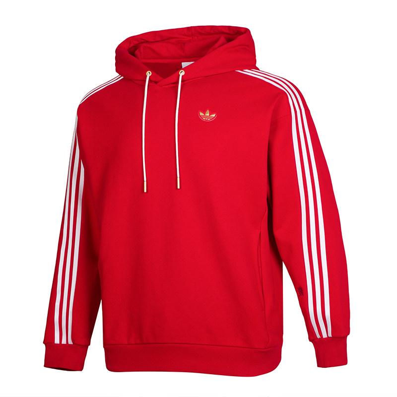 阿迪达斯三叶草卫衣男装新年款红色连帽卫衣25春季动套头衫KA0820