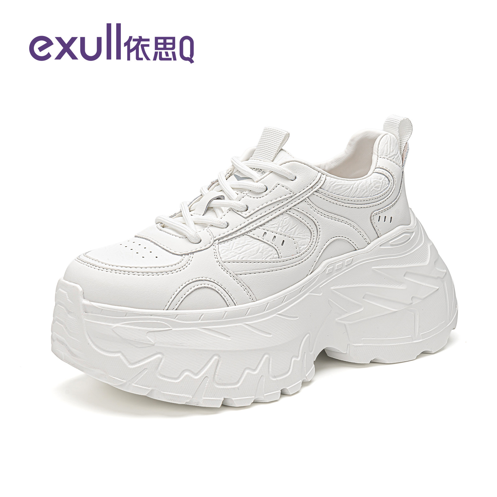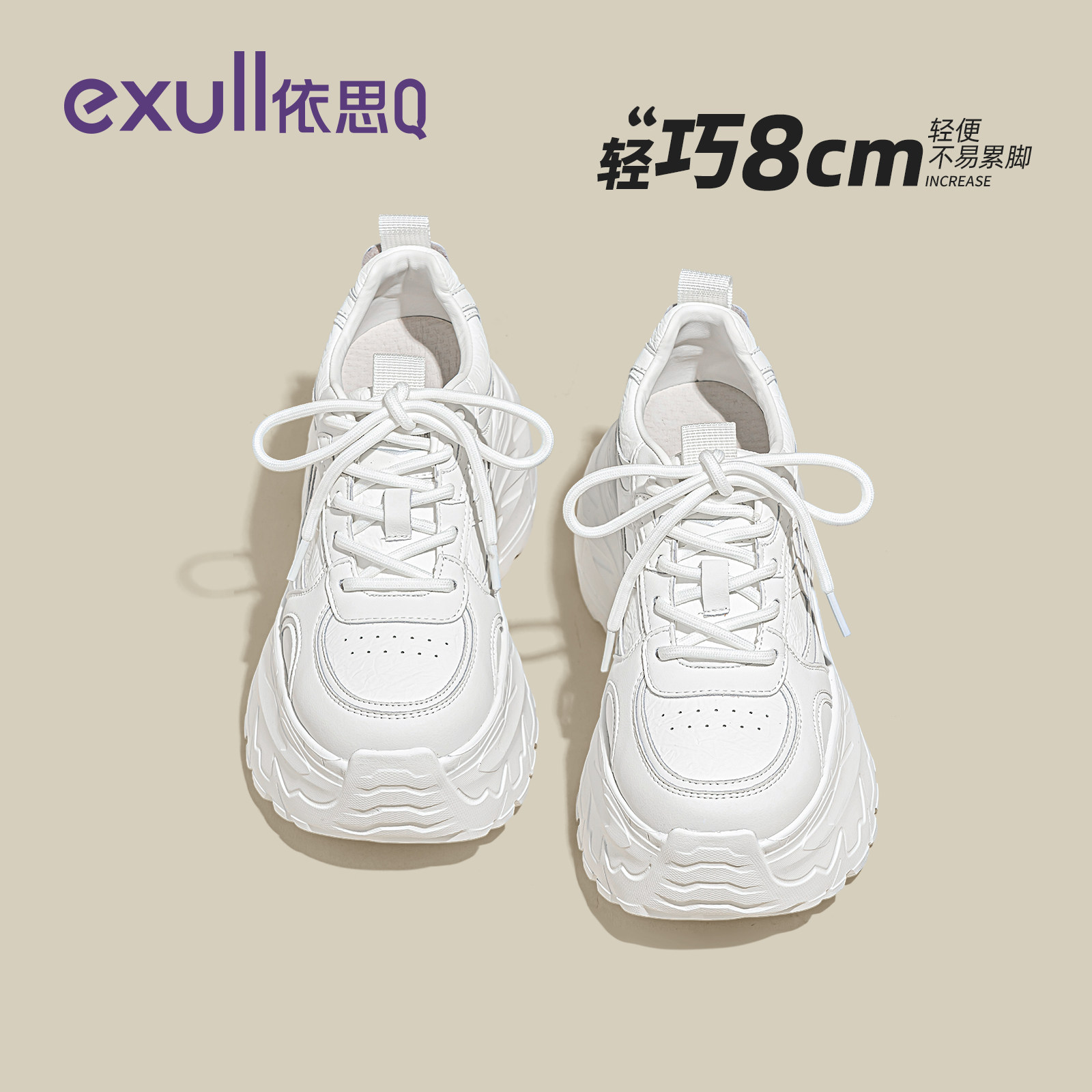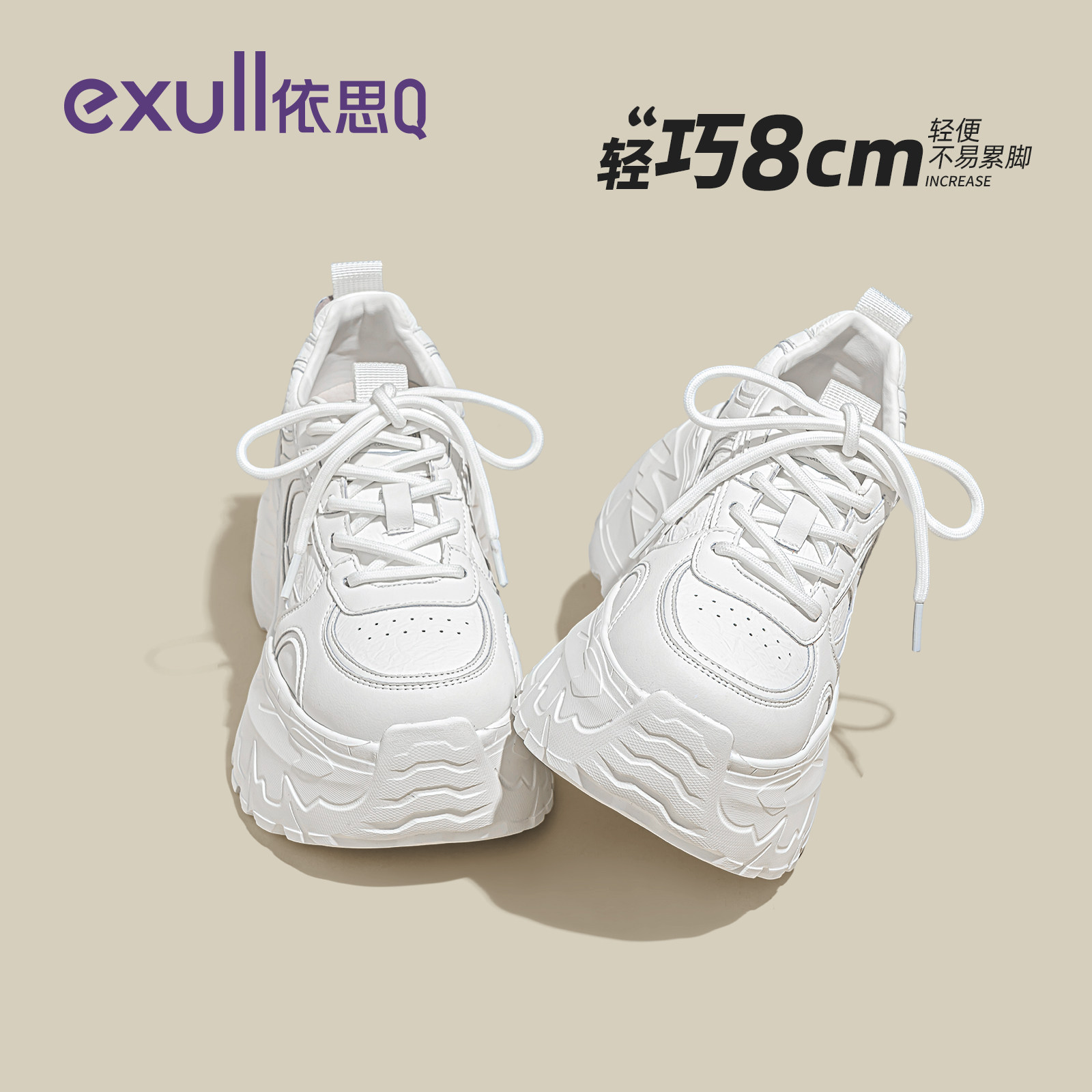 依思q白色厚底老爹鞋女款2026春季新款小个子增高运动鞋百搭女鞋