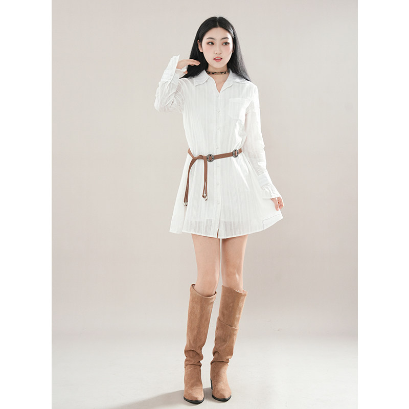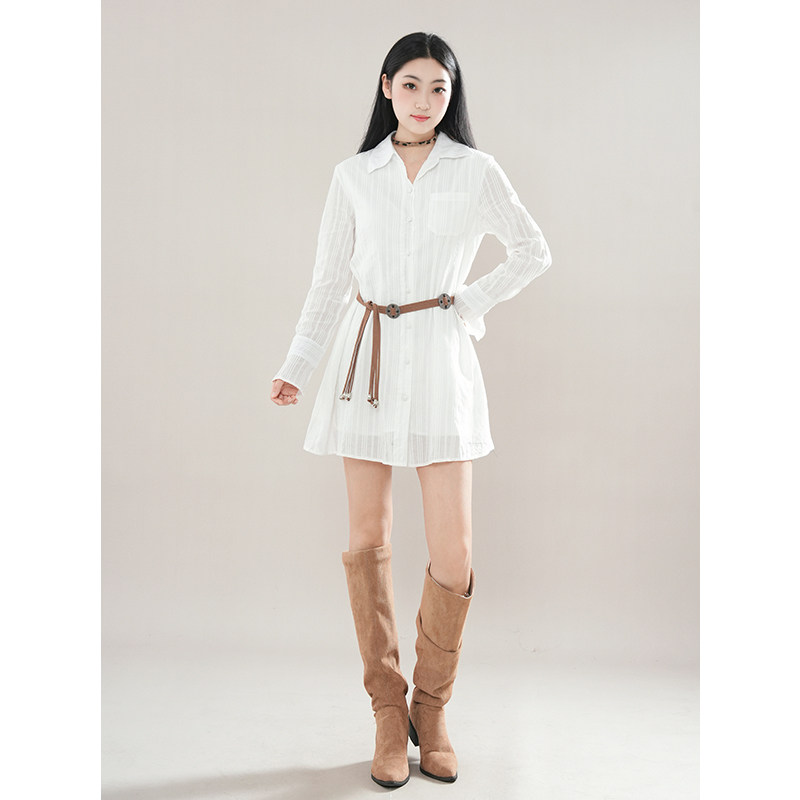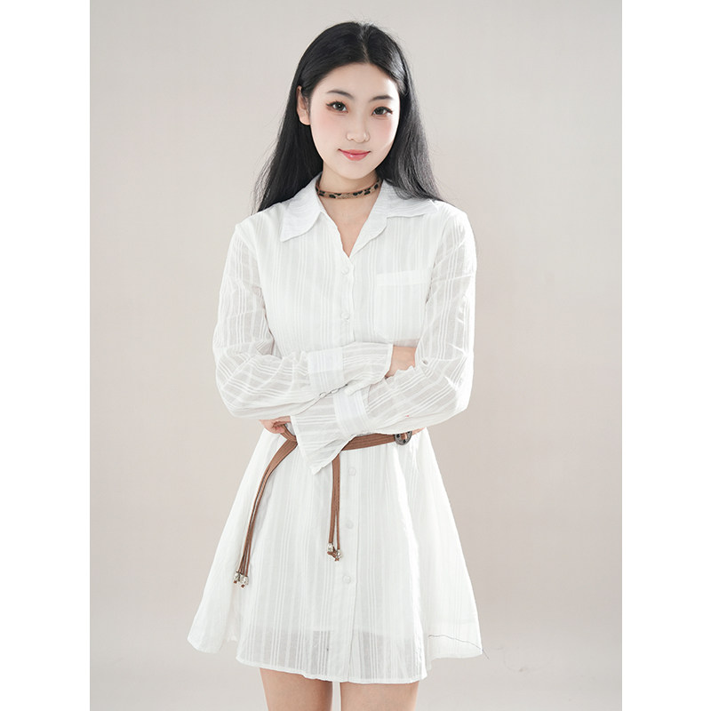白色长袖衬衫连衣裙女初春法式气质甜美学院风Polo领a字短裙子