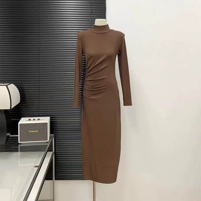 欧美长袖显身材连衣裙女春夏配大衣打底内搭长裙子气质修身包臀裙