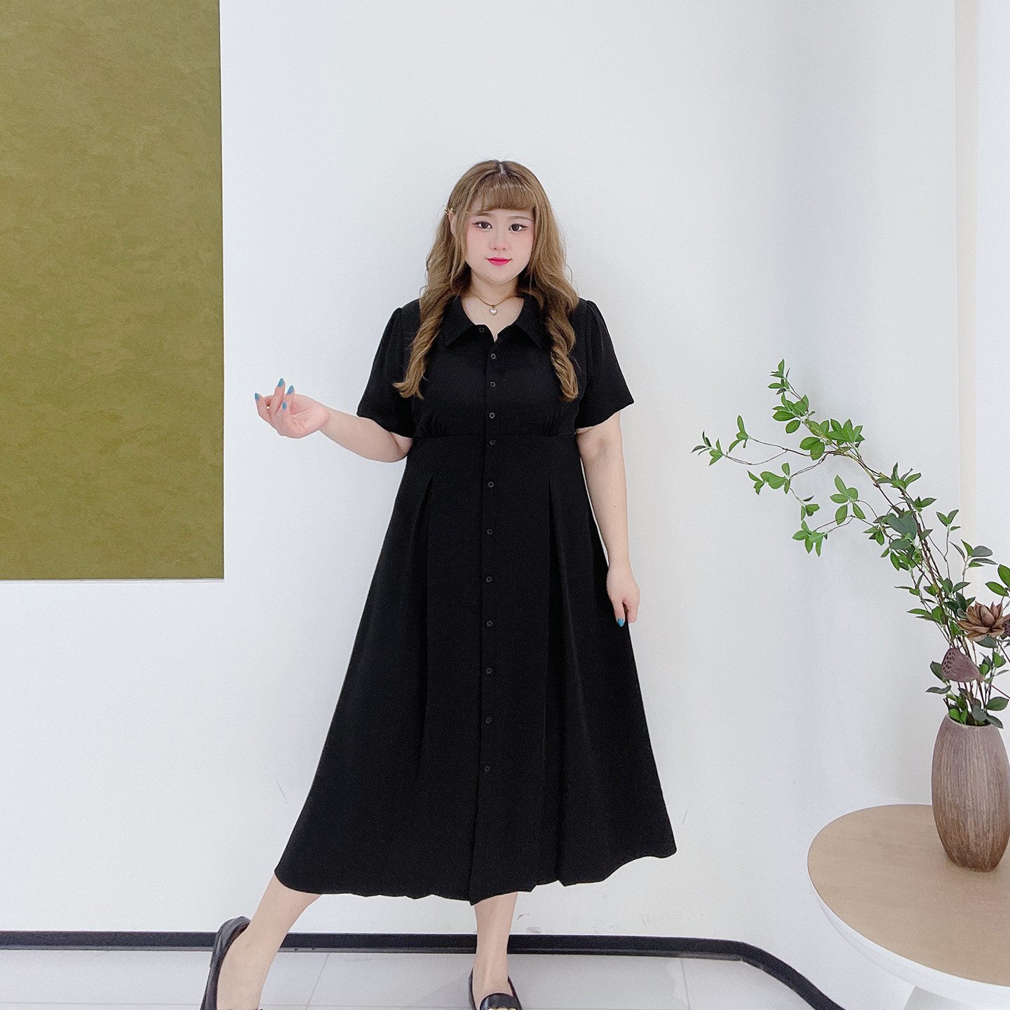 通勤风长短款胖莹莹大码女装气质收腰高级感压褶简约衬衫领连衣裙