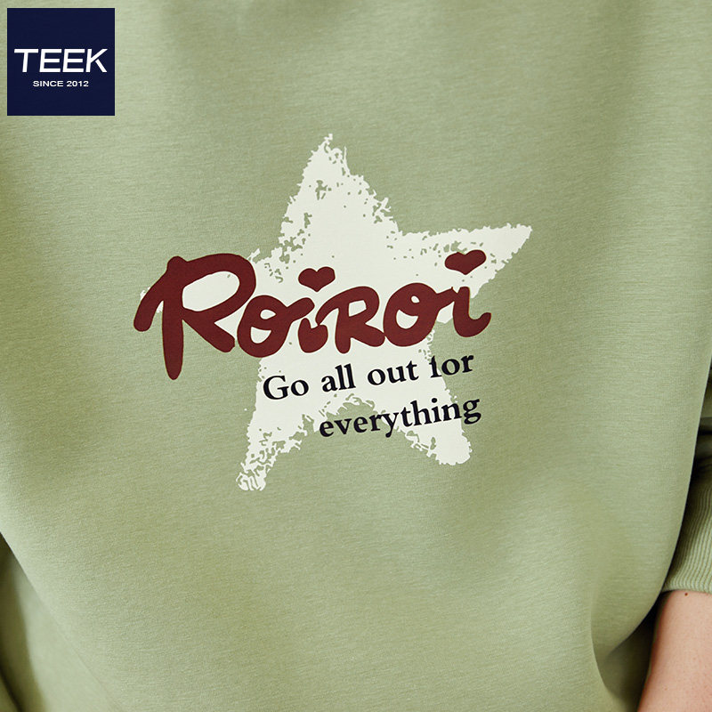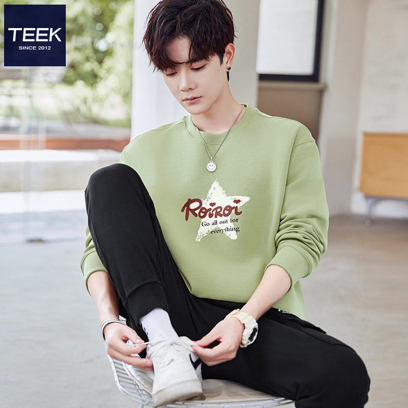 TEEK2026春季新款卫衣男生 草绿色长袖T恤五角星港风大学生上衣服