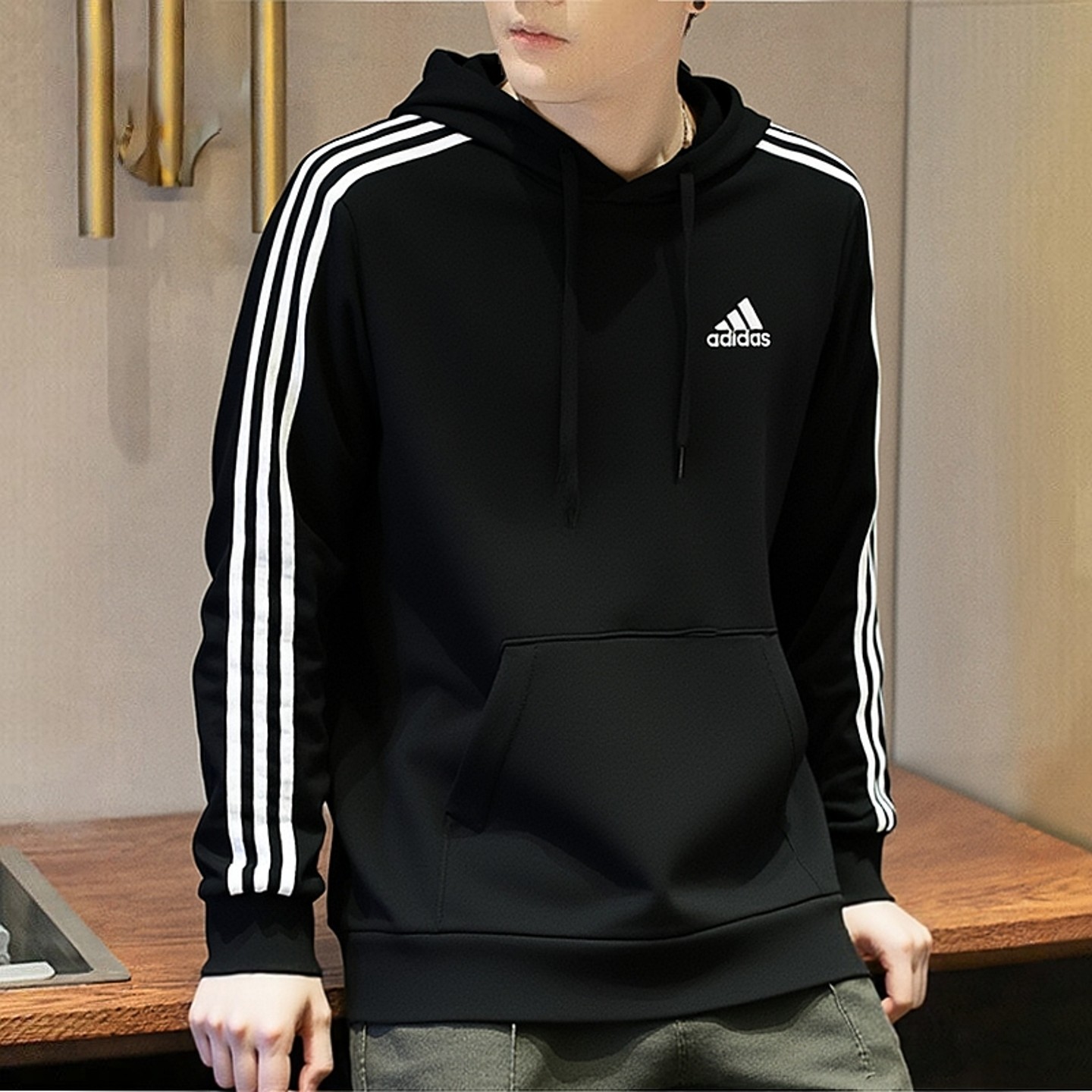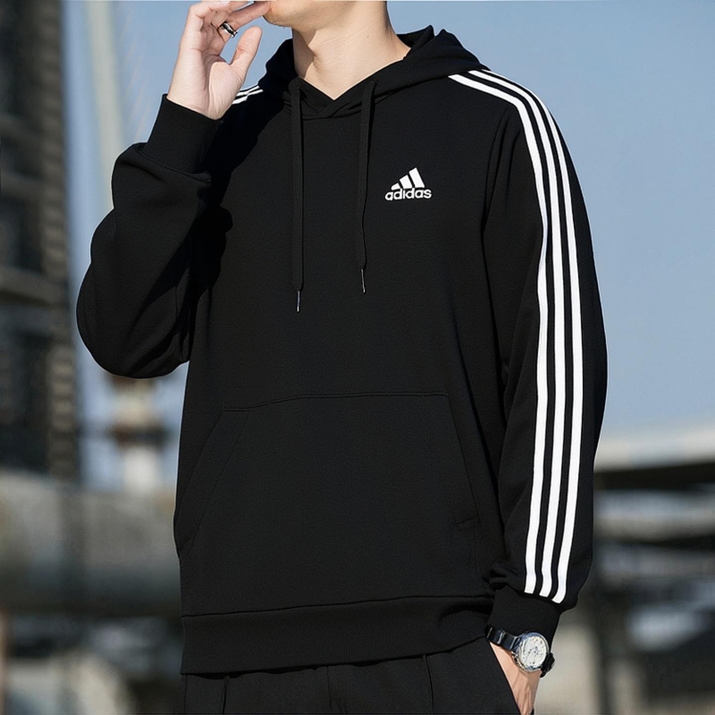 阿迪达斯加绒卫衣男秋季新款保暖宽松大码美式复古三条杠运动服