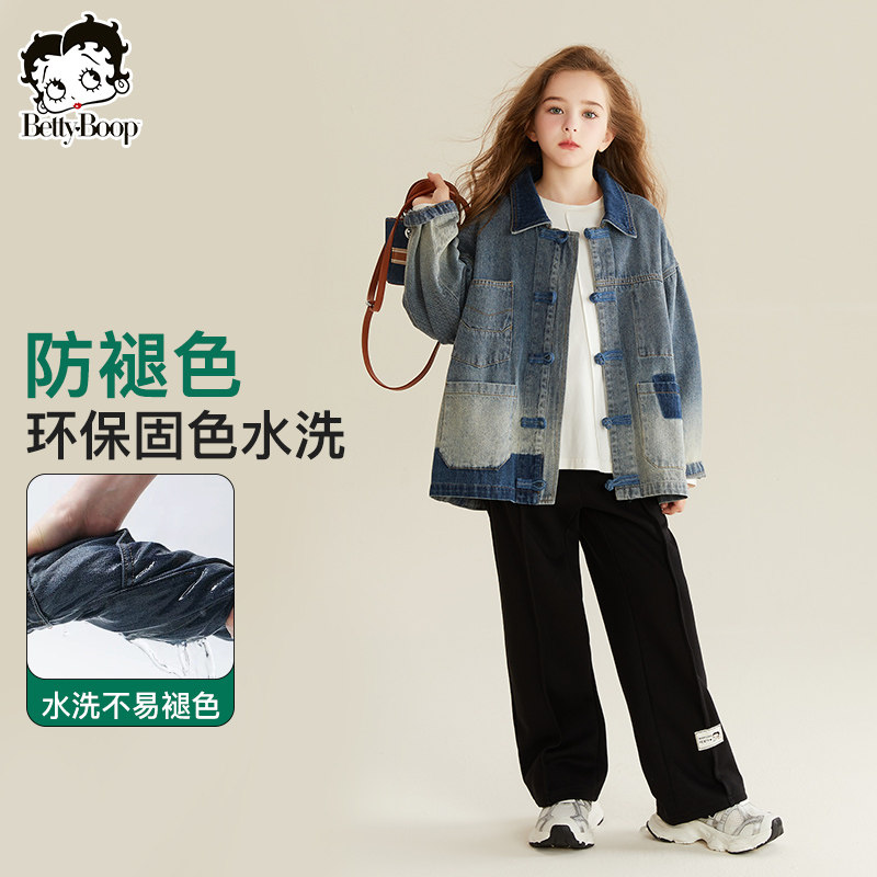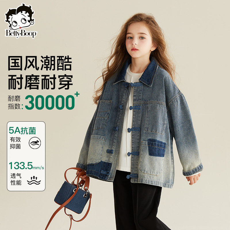 贝蒂童装女童春秋牛仔渐变外套2026年新款春款国风大童翻领上衣