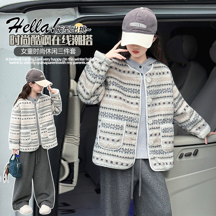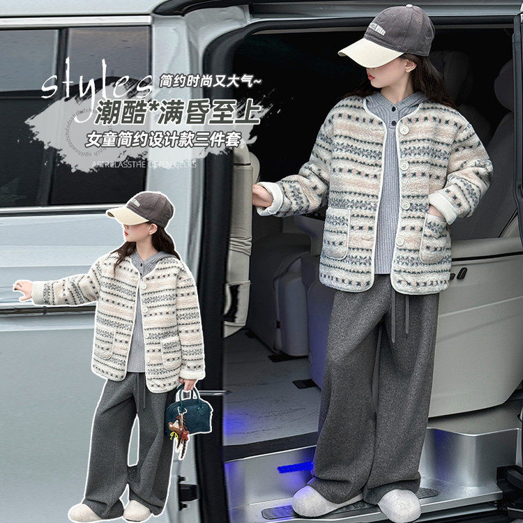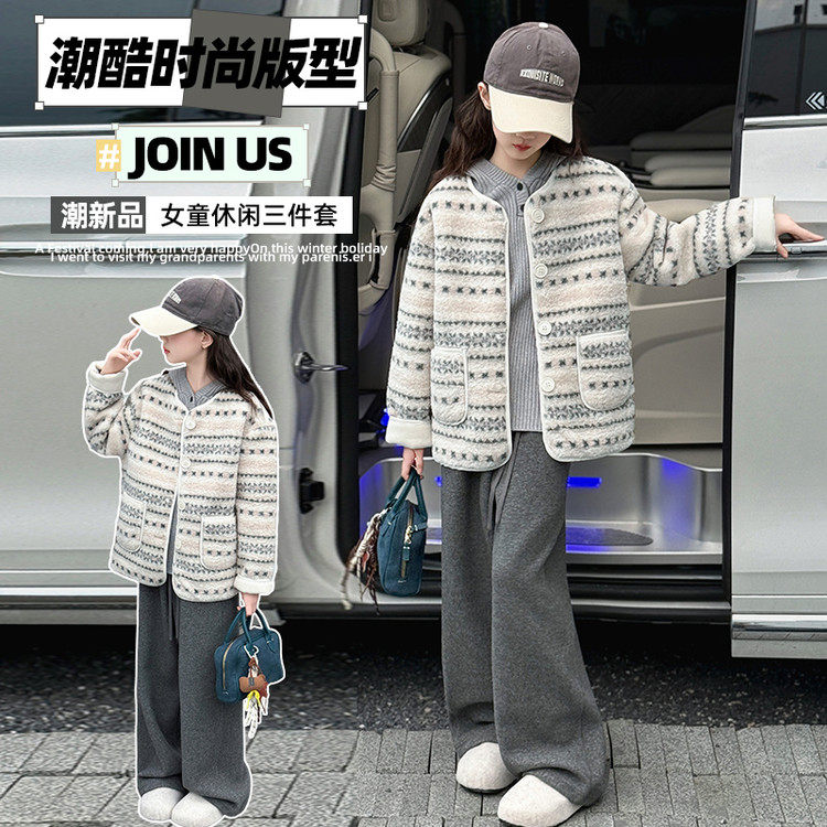 女童套装冬季2025新款初中生女孩洋气童装加绒外套女大童冬装衣服