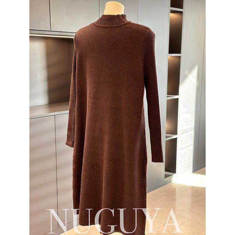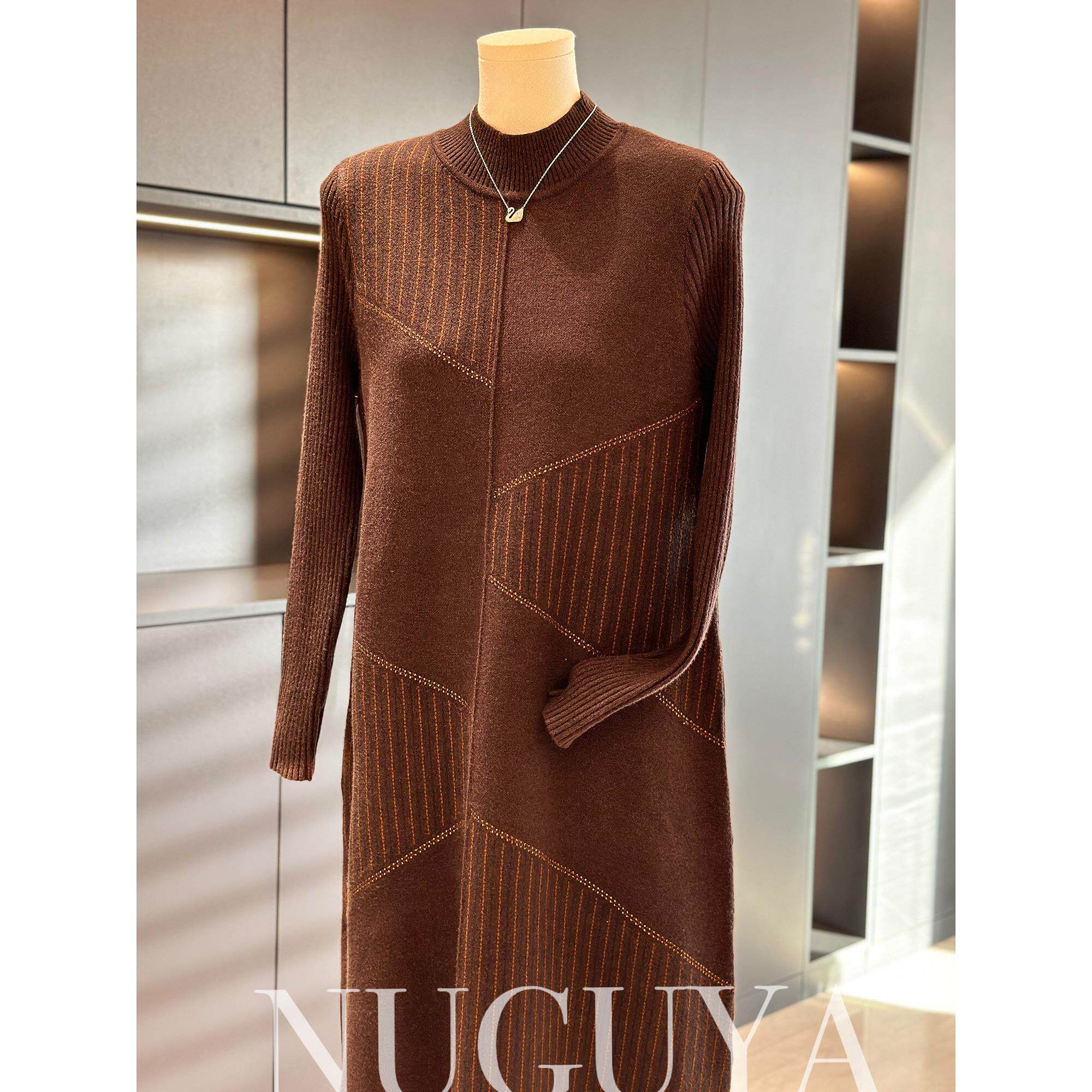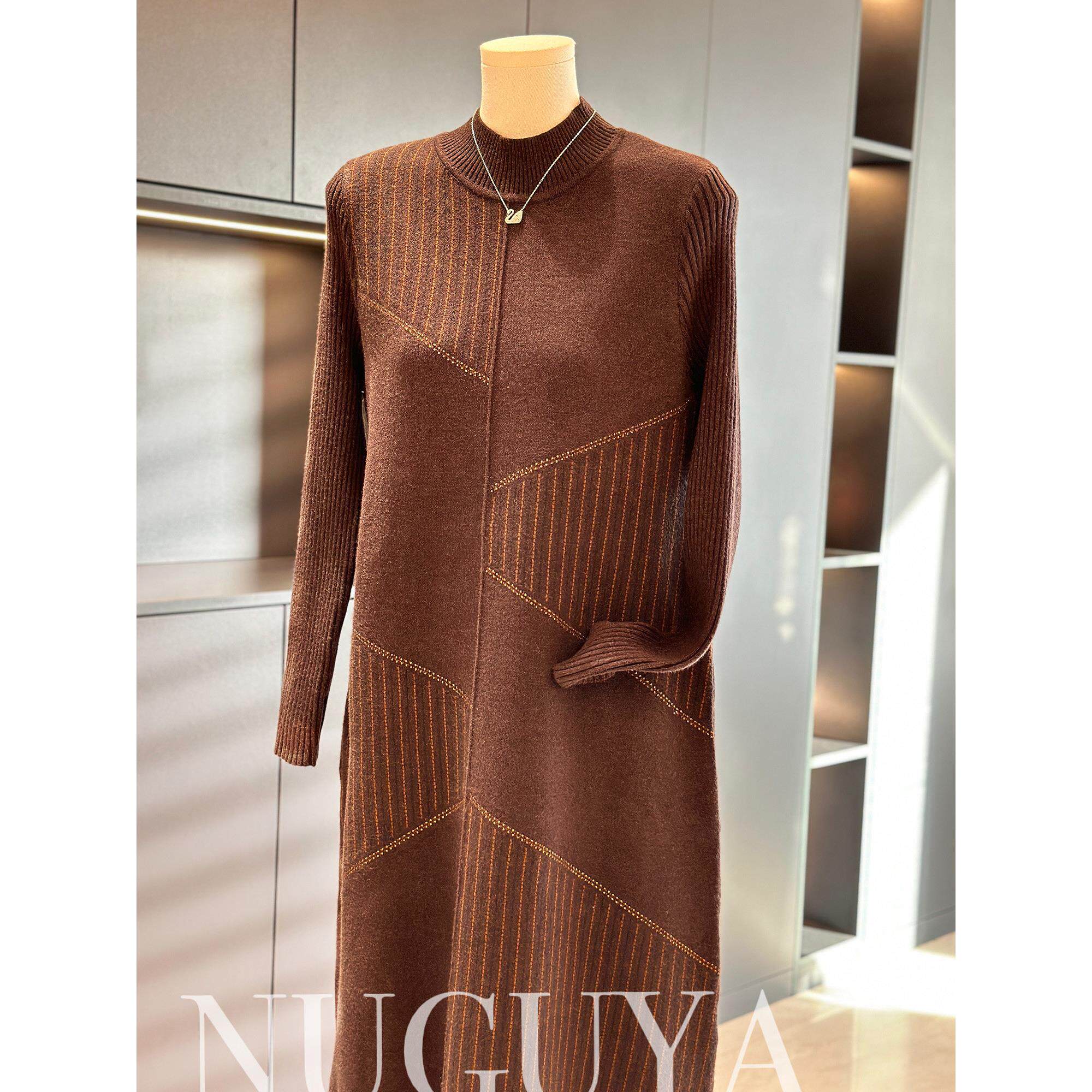 时尚休闲大码妈妈装针织连衣裙女冬装新款中长款加厚毛衣裙子中年