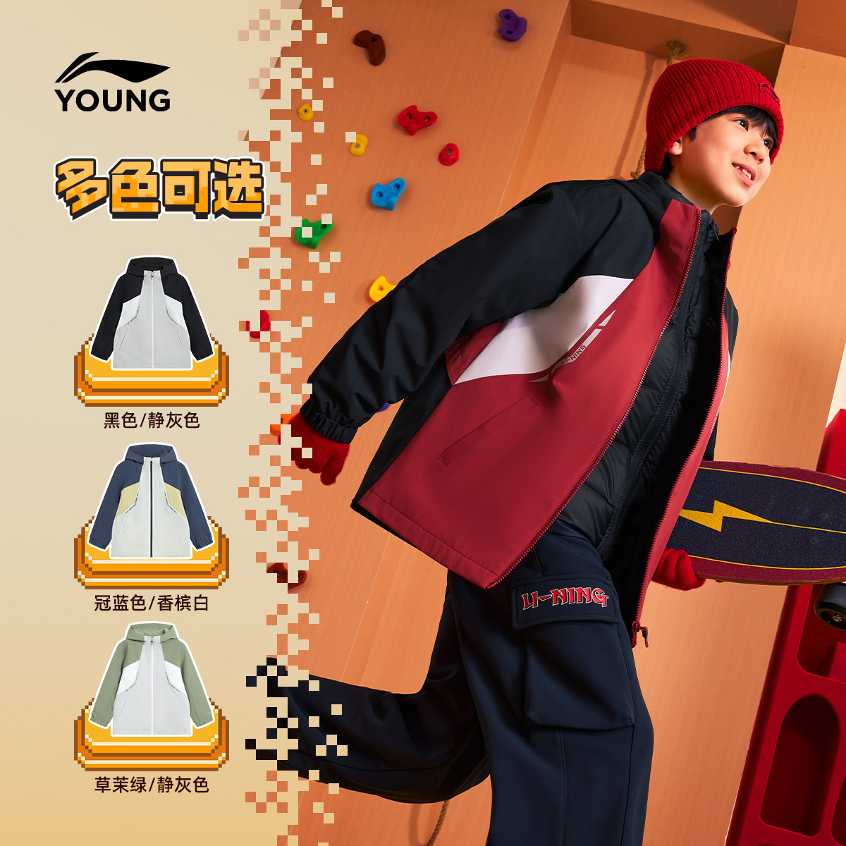 2件|李宁儿童三合一羽绒服冲锋衣男大童2026马年外套新年冬季童装