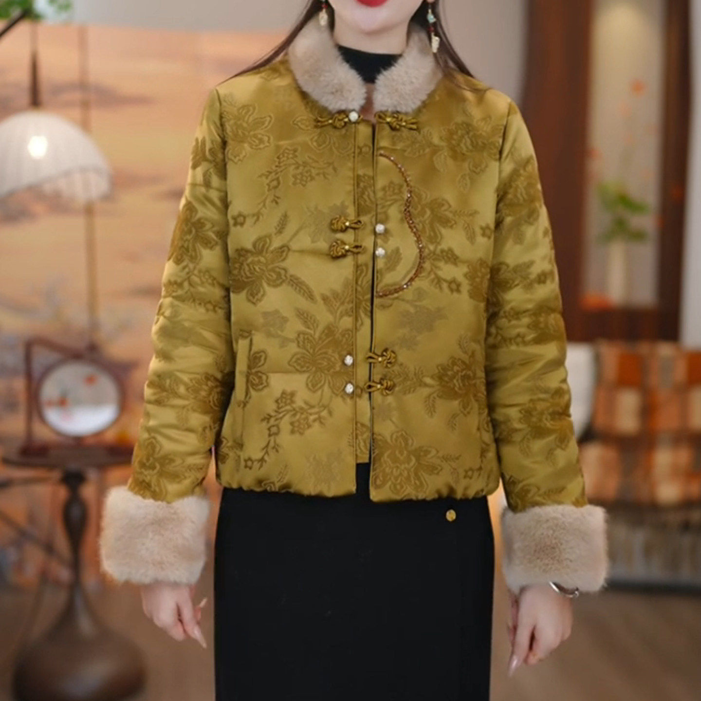 新中式国风羽绒棉服外套女冬2026新款晋江二棉小个子妈妈棉衣棉袄