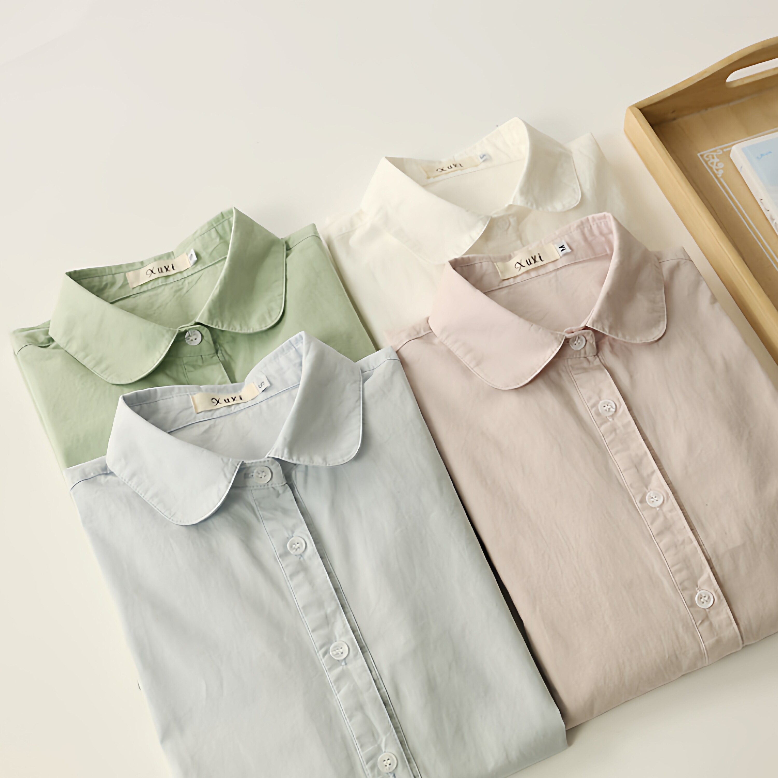 2026春季新款娃娃领纯棉白色衬衫女长袖学生内搭打底全棉衬衣上衣