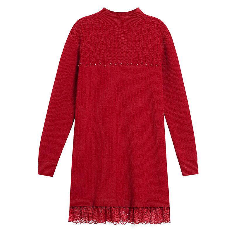 秋冬新款针织连衣裙女一体加绒加厚毛衣中长款内搭蕾丝打底羊毛衫