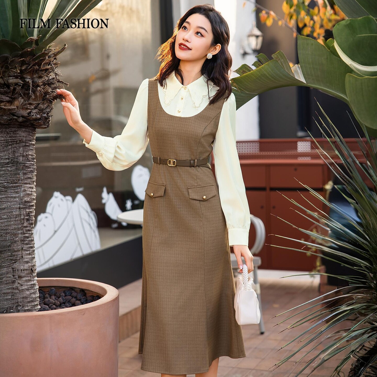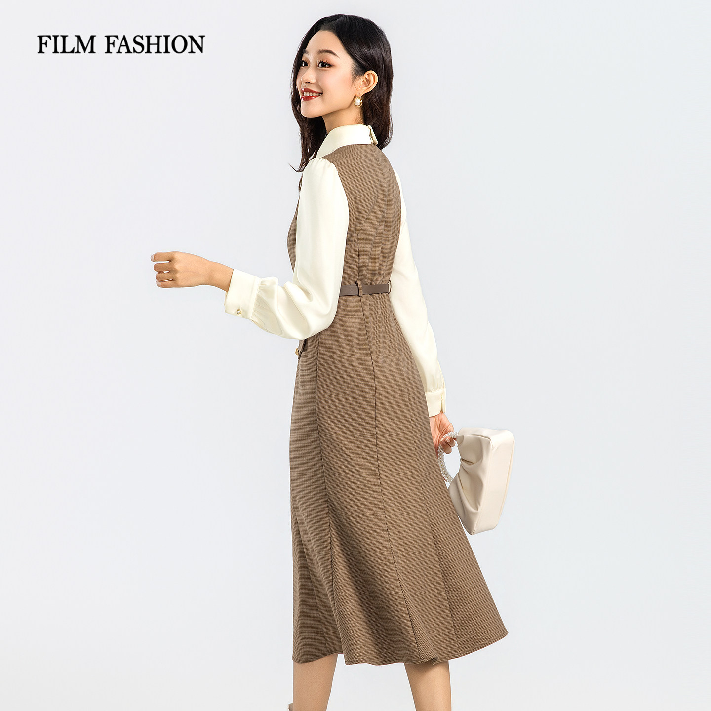 一电影一时装2026早春新款假两件连衣裙格纹裙子收腰高级时尚女士