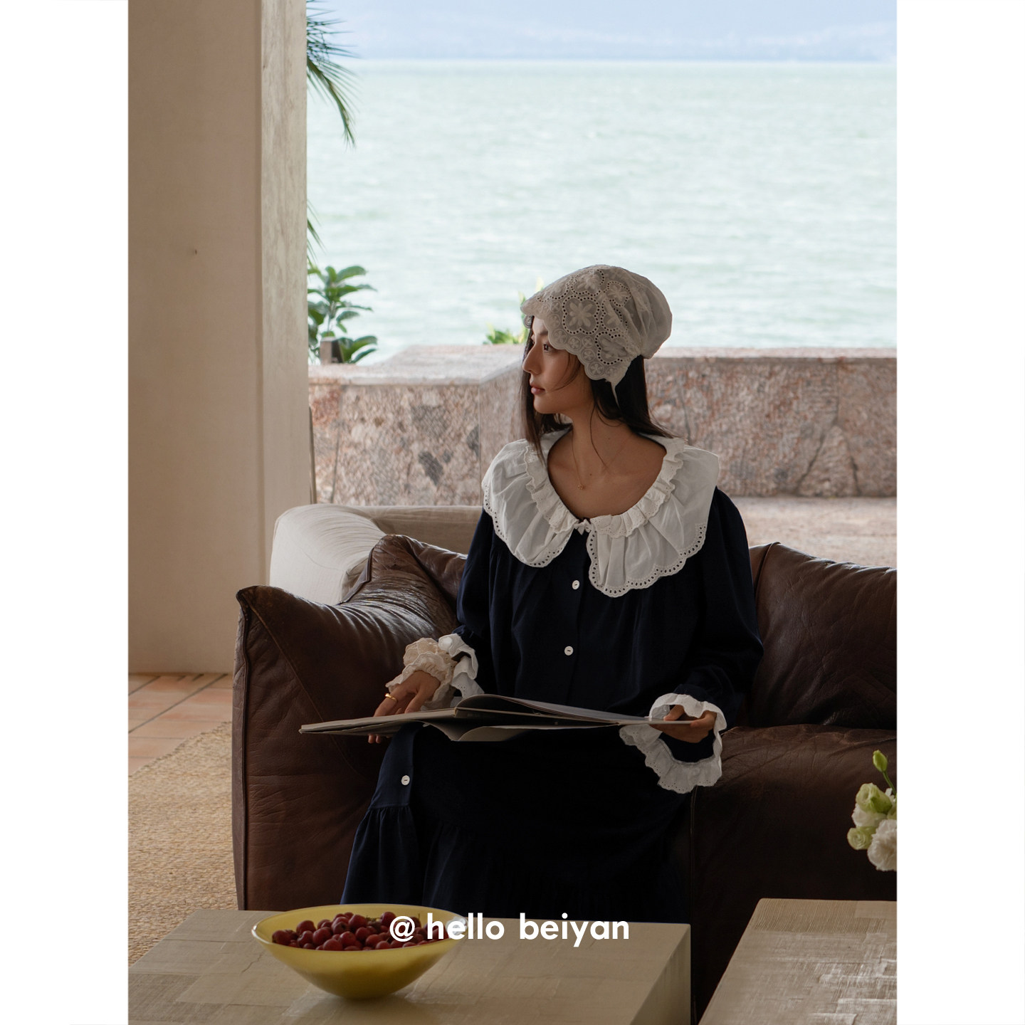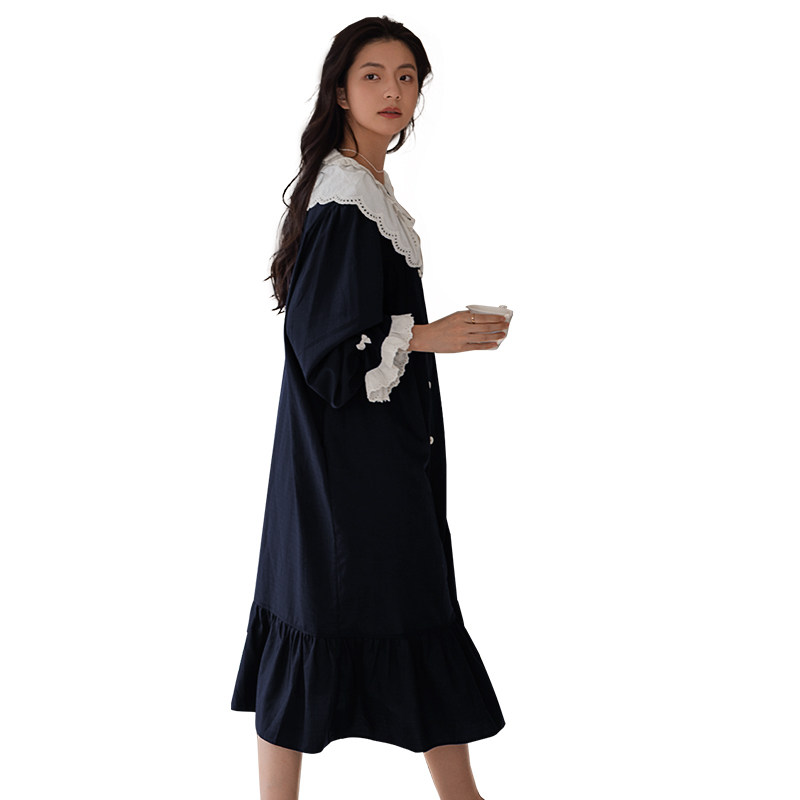 贝妍柔软莫代尔棉睡衣女长袖春秋季开衫大码睡裙法式中长款连衣裙