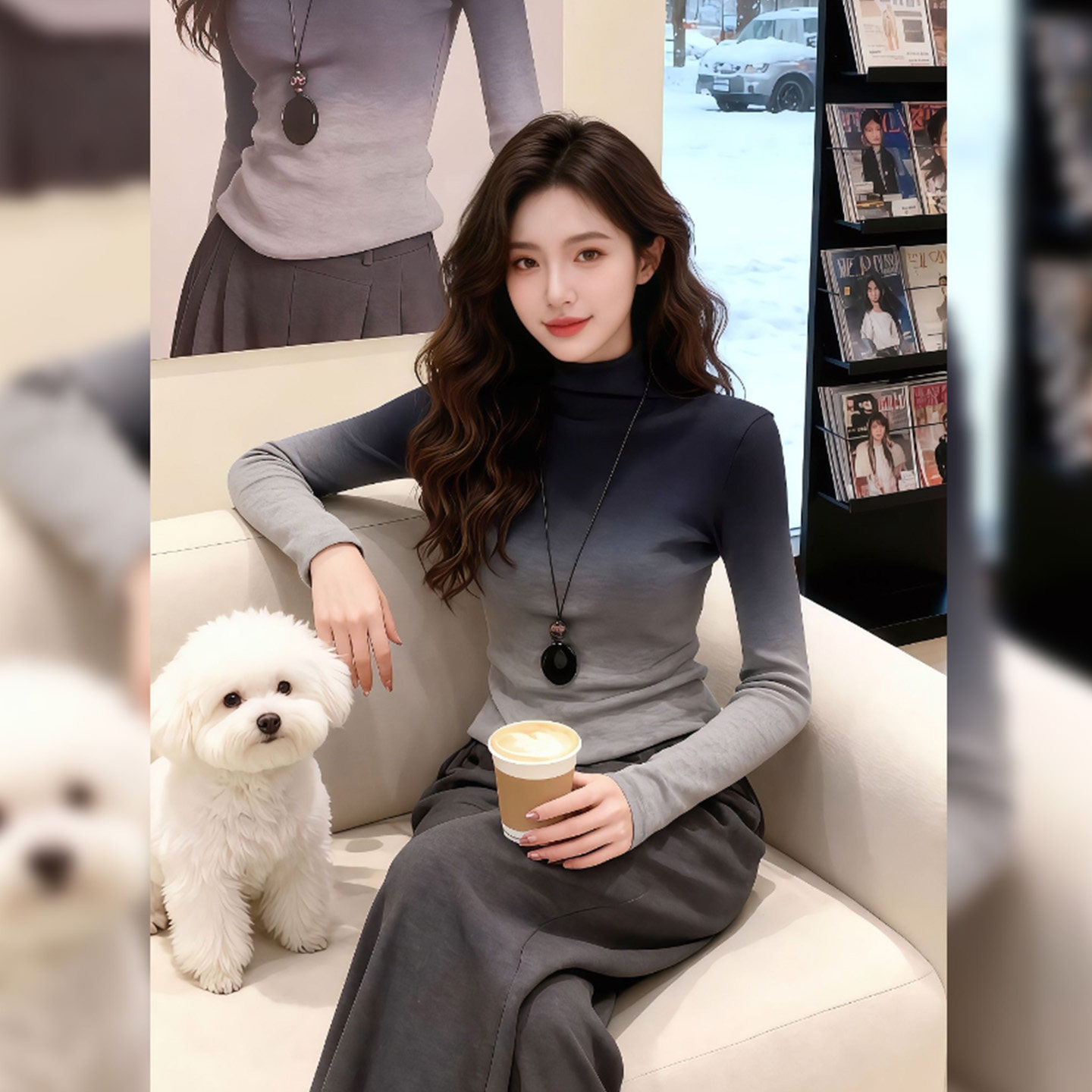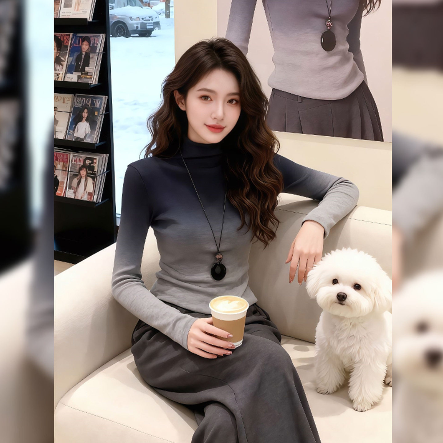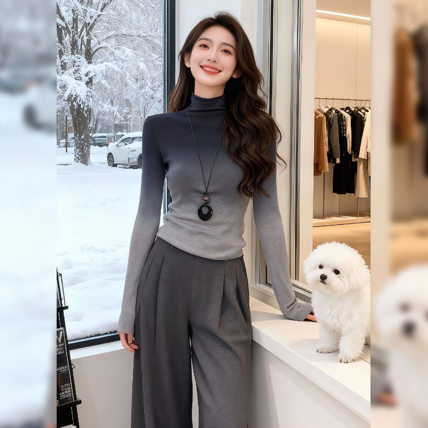 今年流行爆款渐变色高领打底衫上衣2026秋冬新款早春法式t恤女装