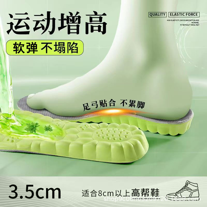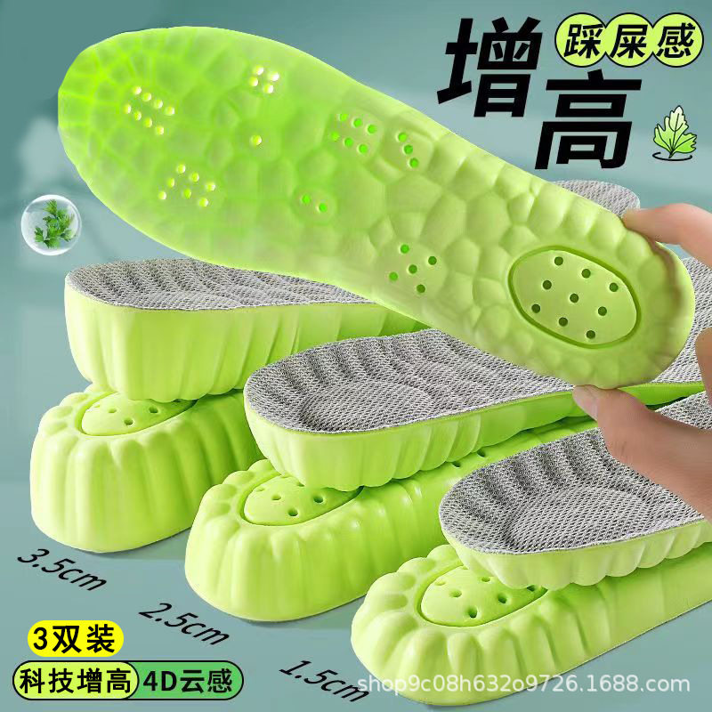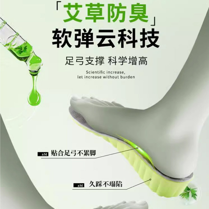 艾草除臭增高鞋垫男吸汗防臭运动减震隐形不累脚内增高鞋垫女秋冬