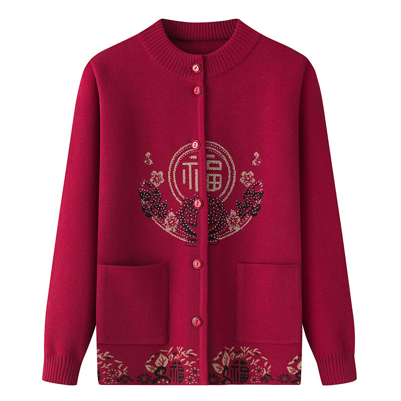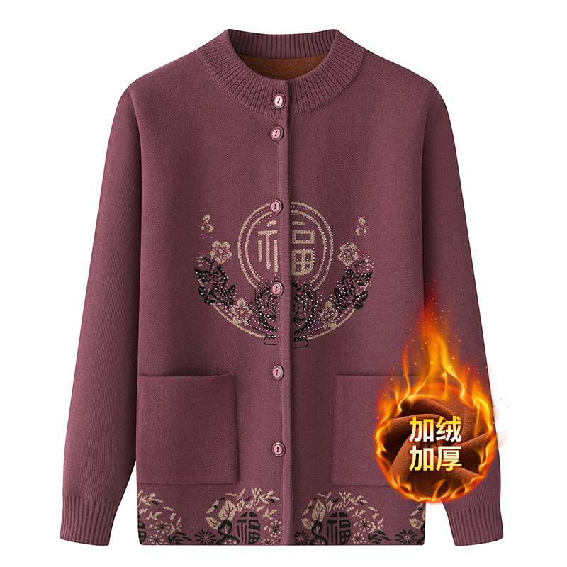 奶奶秋冬装毛衣中老年开衫加厚新款中老年人衣服妈妈加绒保暖外套