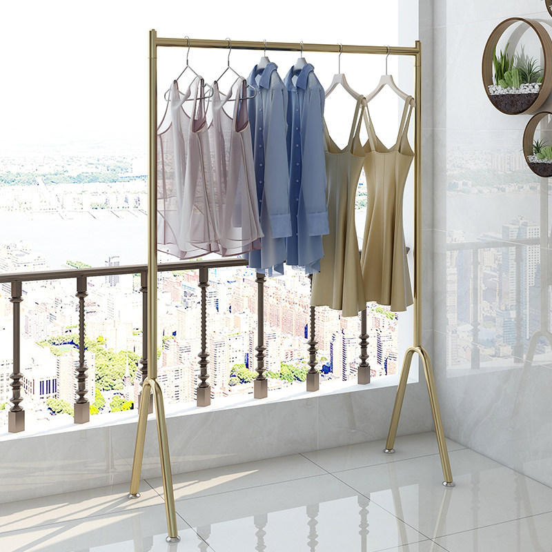 阳台晾晒衣架落地式挂衣服单杆家用楼顶简易卧室内外户外折叠衣架