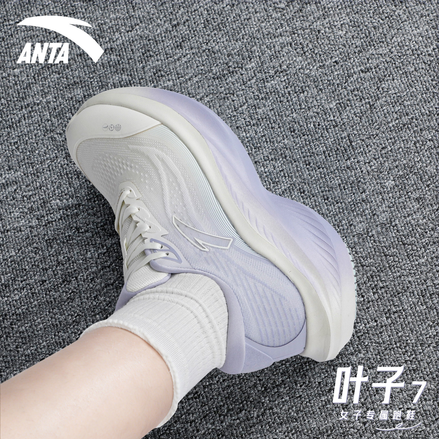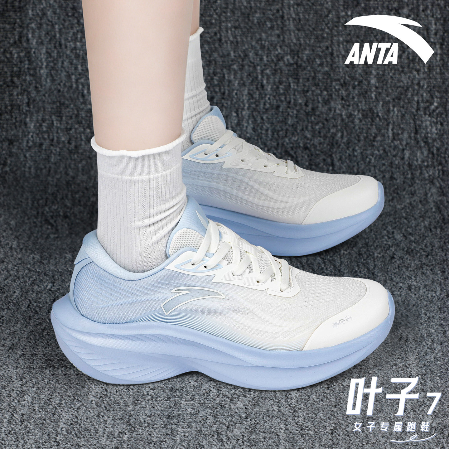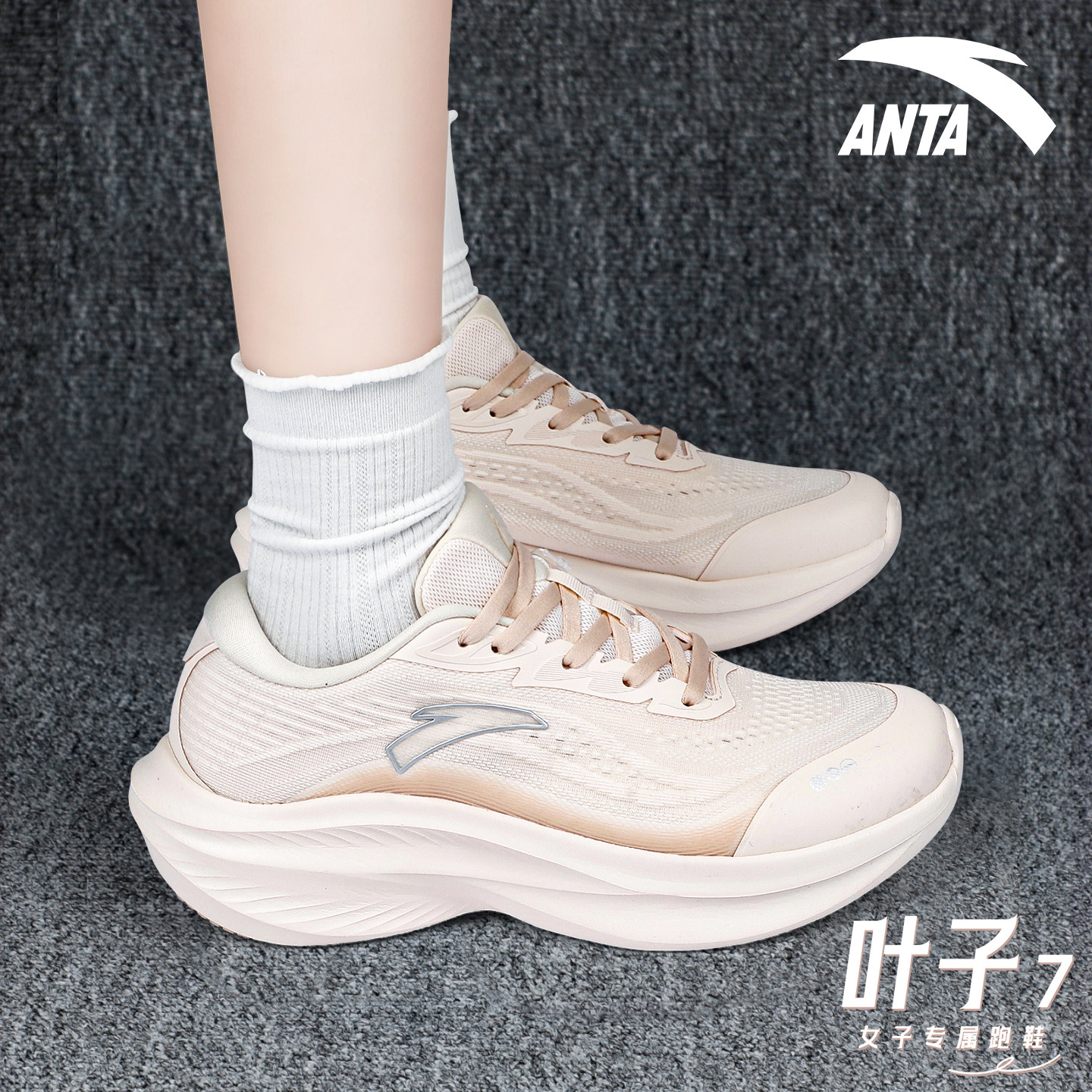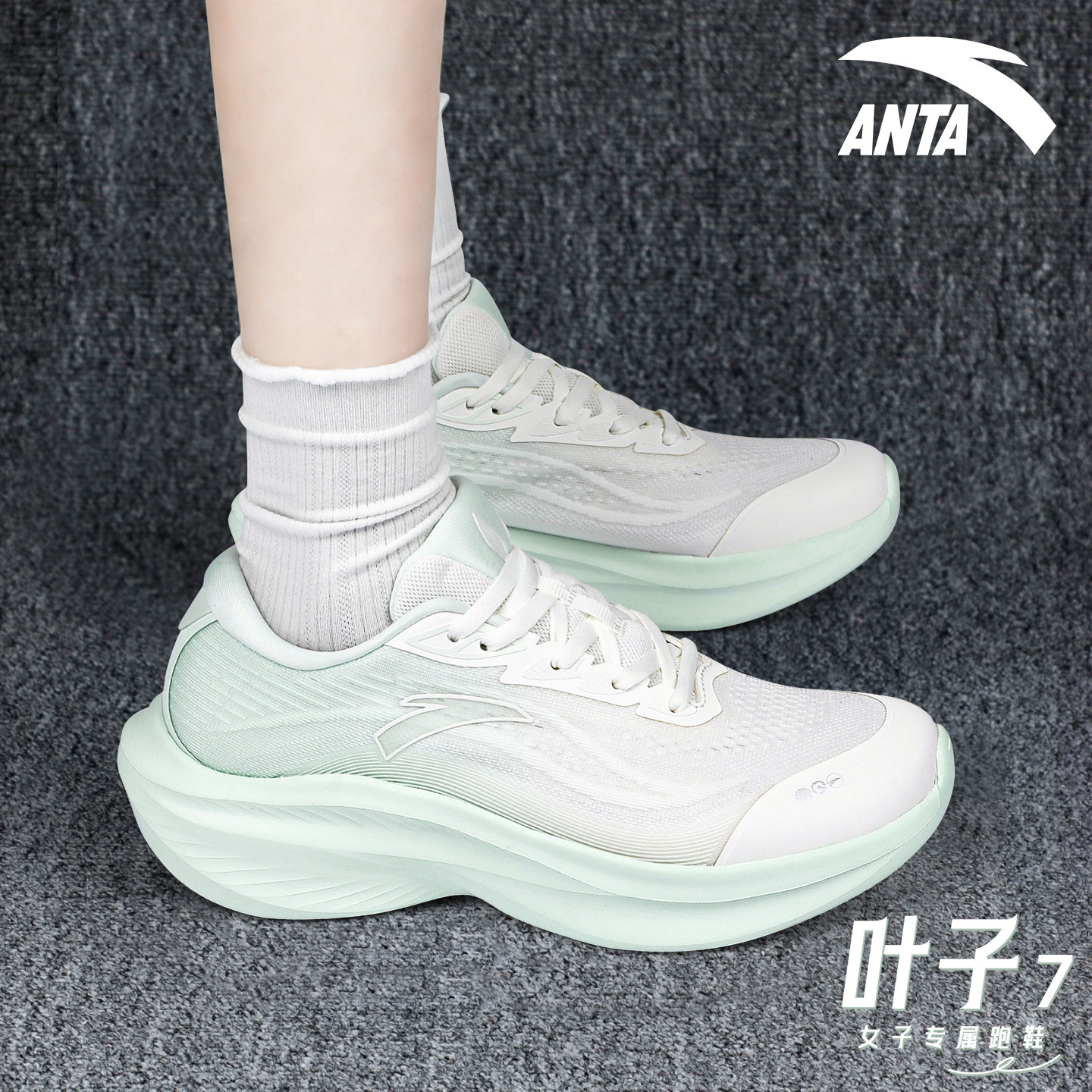 安踏叶子7女鞋厚底跑步鞋冬季2026新款初中生青少年网面运动鞋女