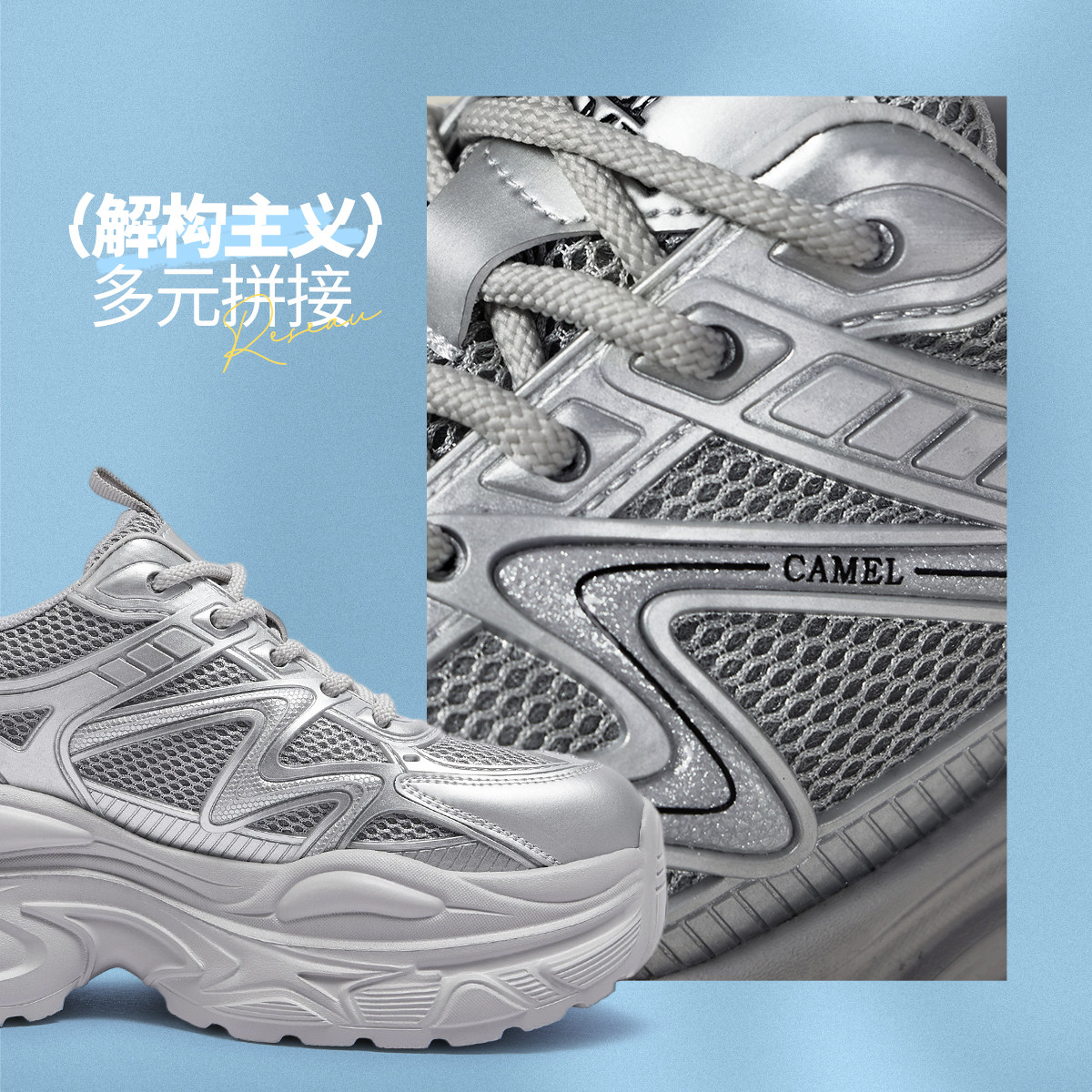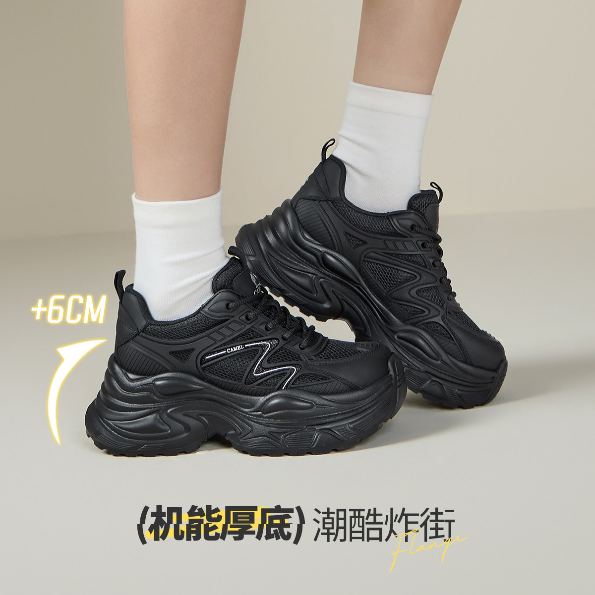 骆驼女鞋2026年春季新品厚底老爹鞋白色百搭增高休闲运动鞋女款