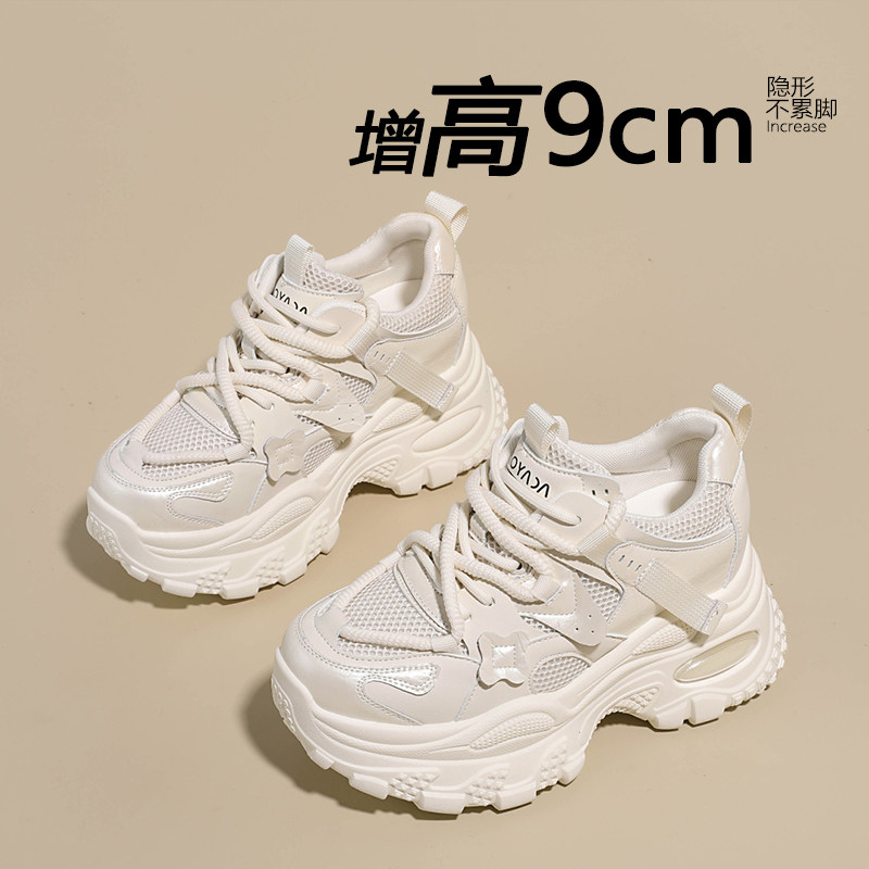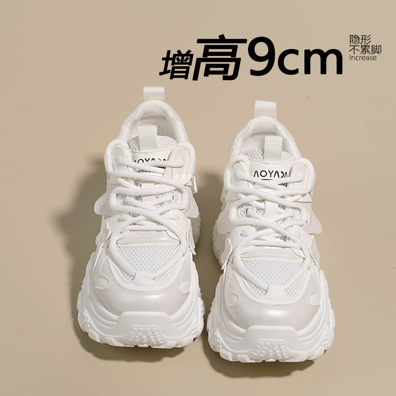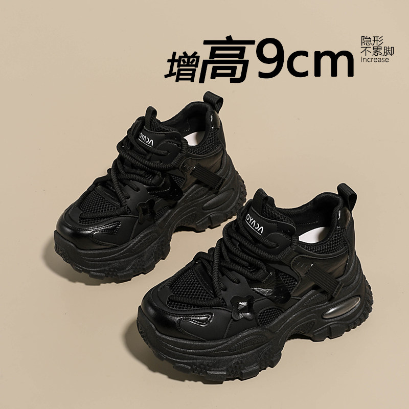 9cm内增高黑色老爹鞋女款2026新款爆款百搭厚底休闲鞋白色运动鞋