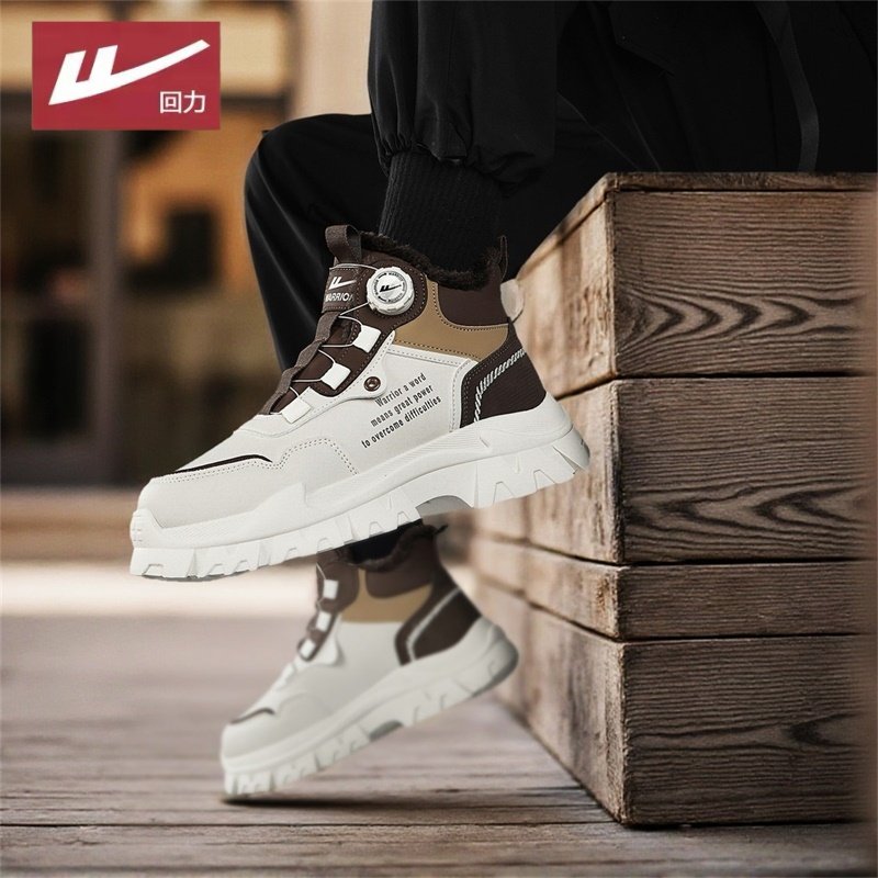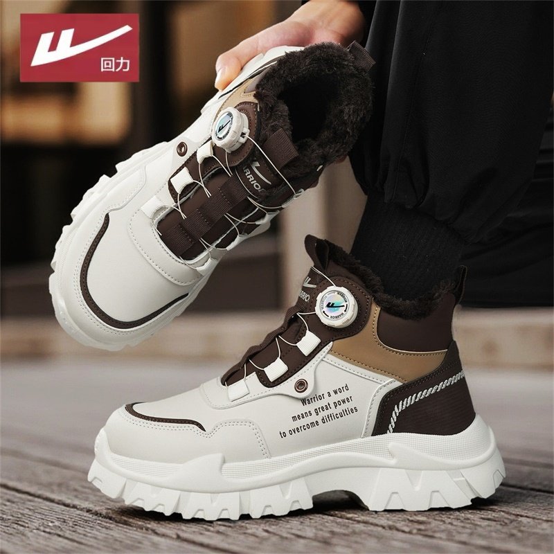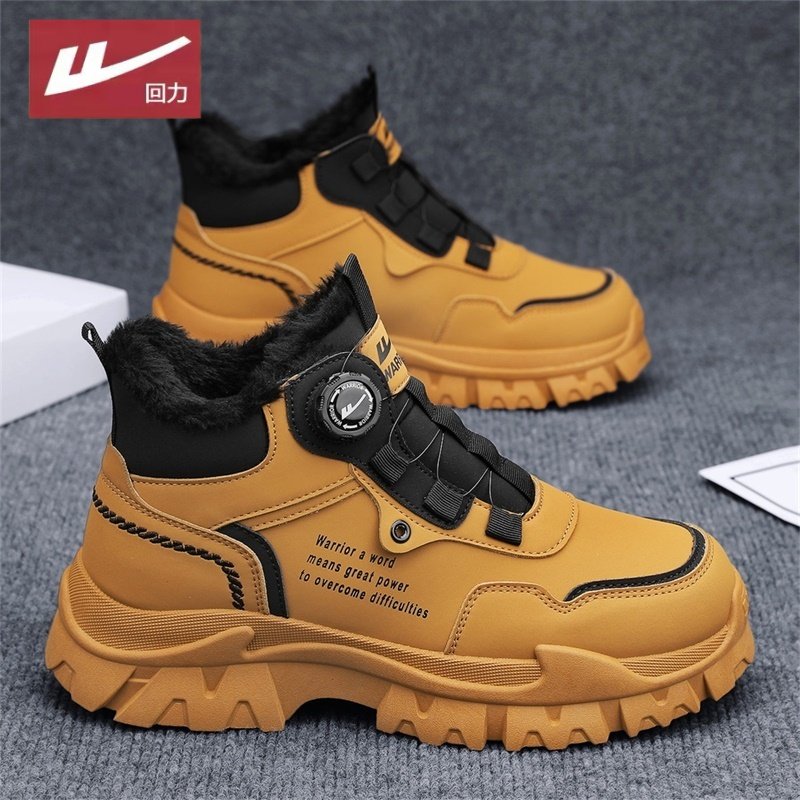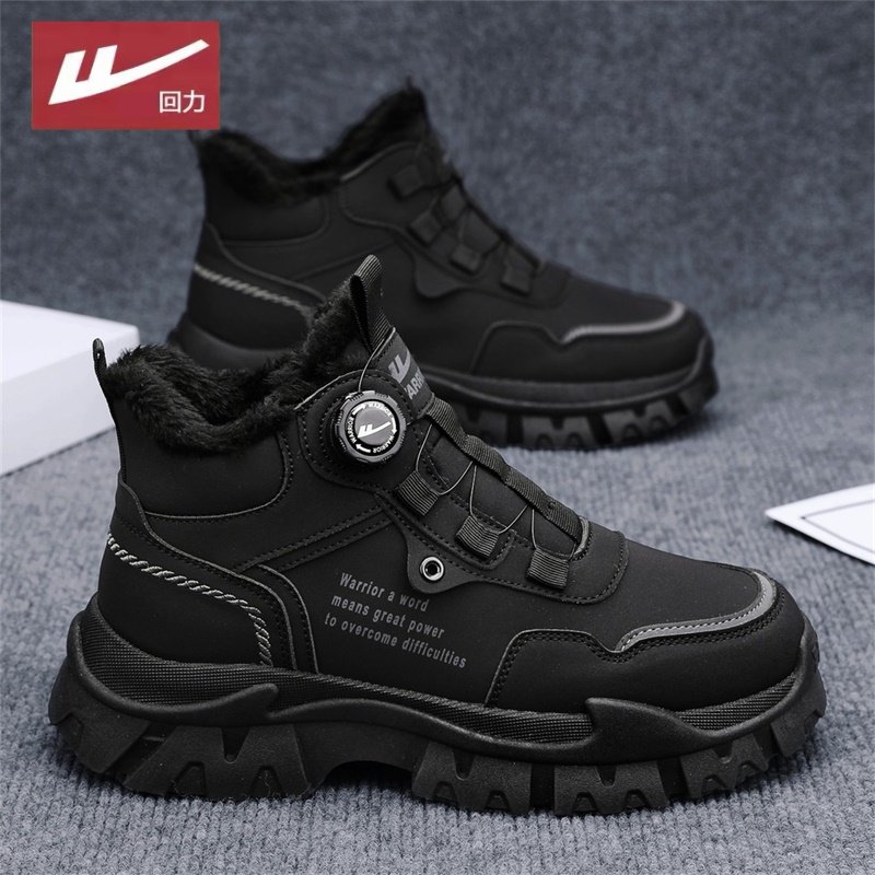 回力男鞋冬季男士户外厚底防滑加绒棉靴耐磨工装靴马丁靴子登山鞋