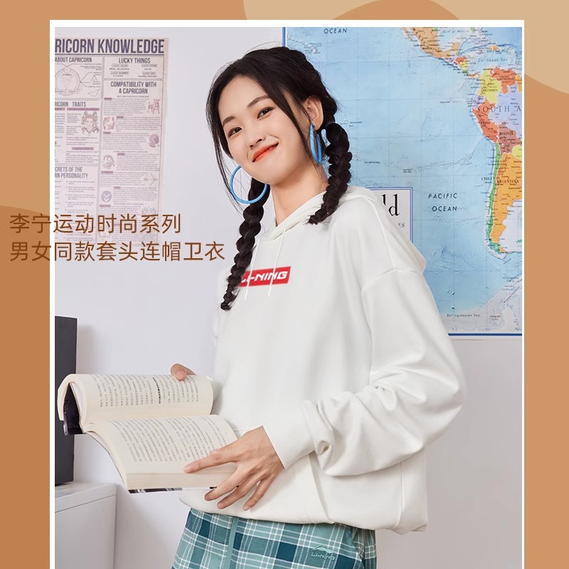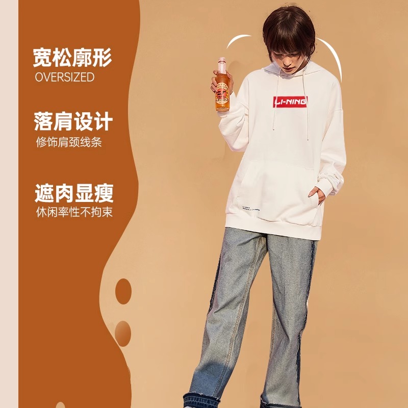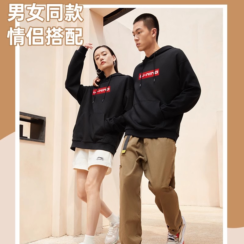 李宁卫衣男秋冬2026新款加绒加厚连帽套头外套国潮运动情侣上衣女