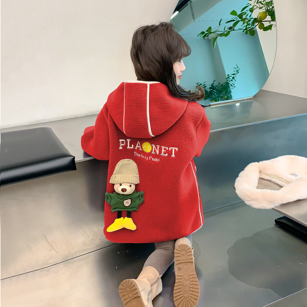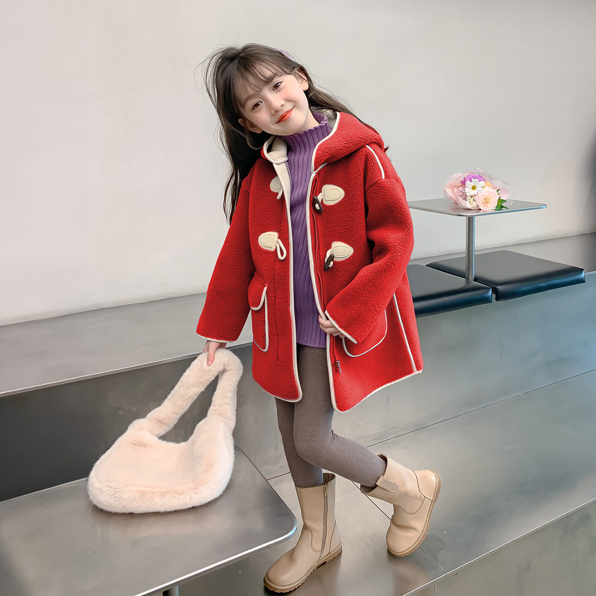 【小梨专享】2026新款加绒加厚外套女孩中长款毛毛衣DY88828