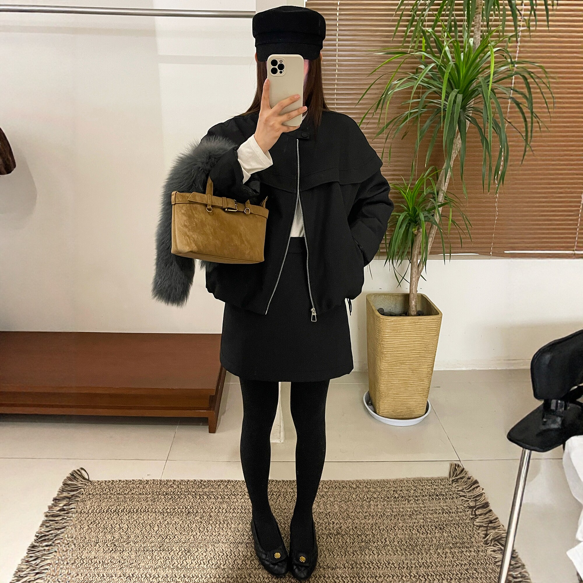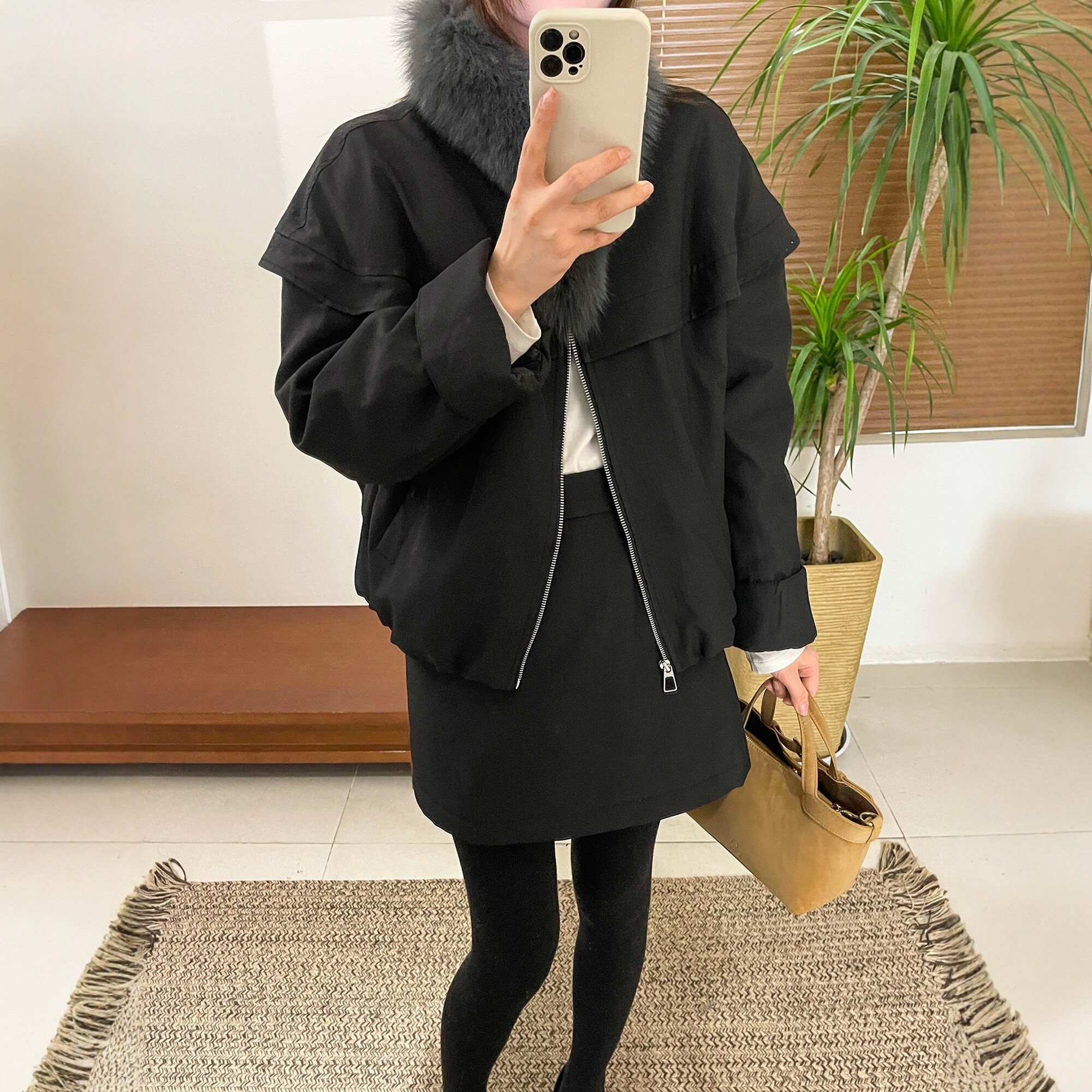 配毛领羽绒服外套半身裙两件套装女欧洲站2025冬装新款欧货女装潮