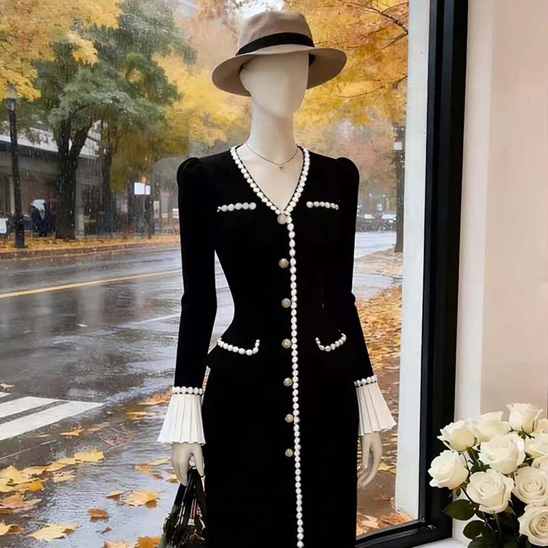 爆款V领收腰显瘦连衣裙女2026春季新款气质A字裙D4610