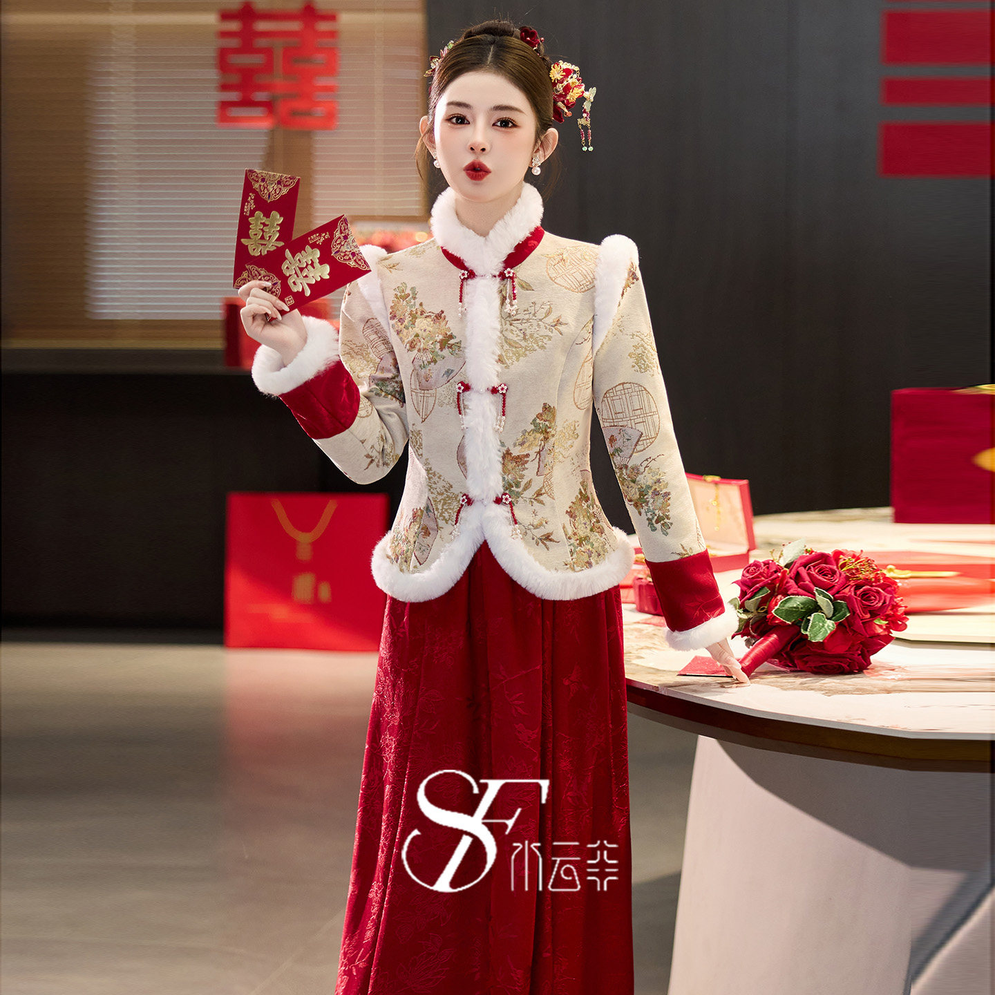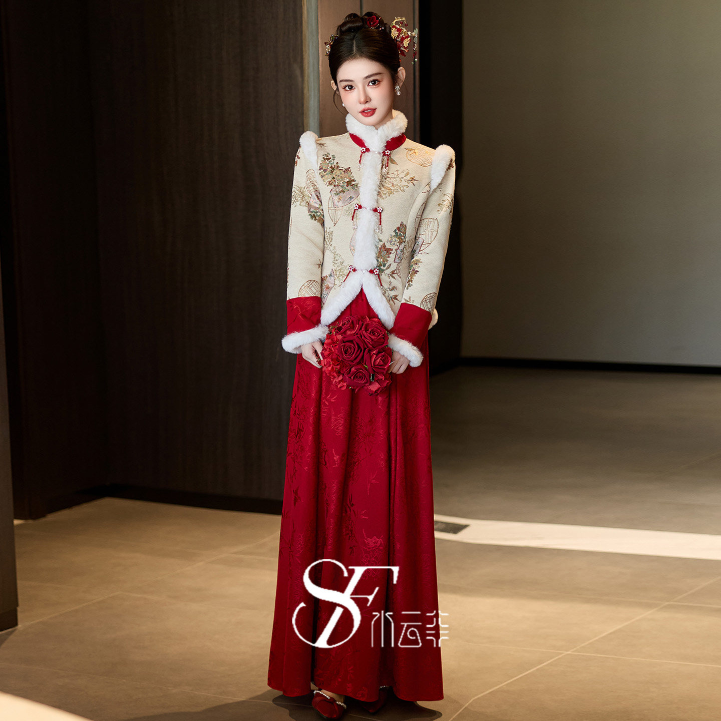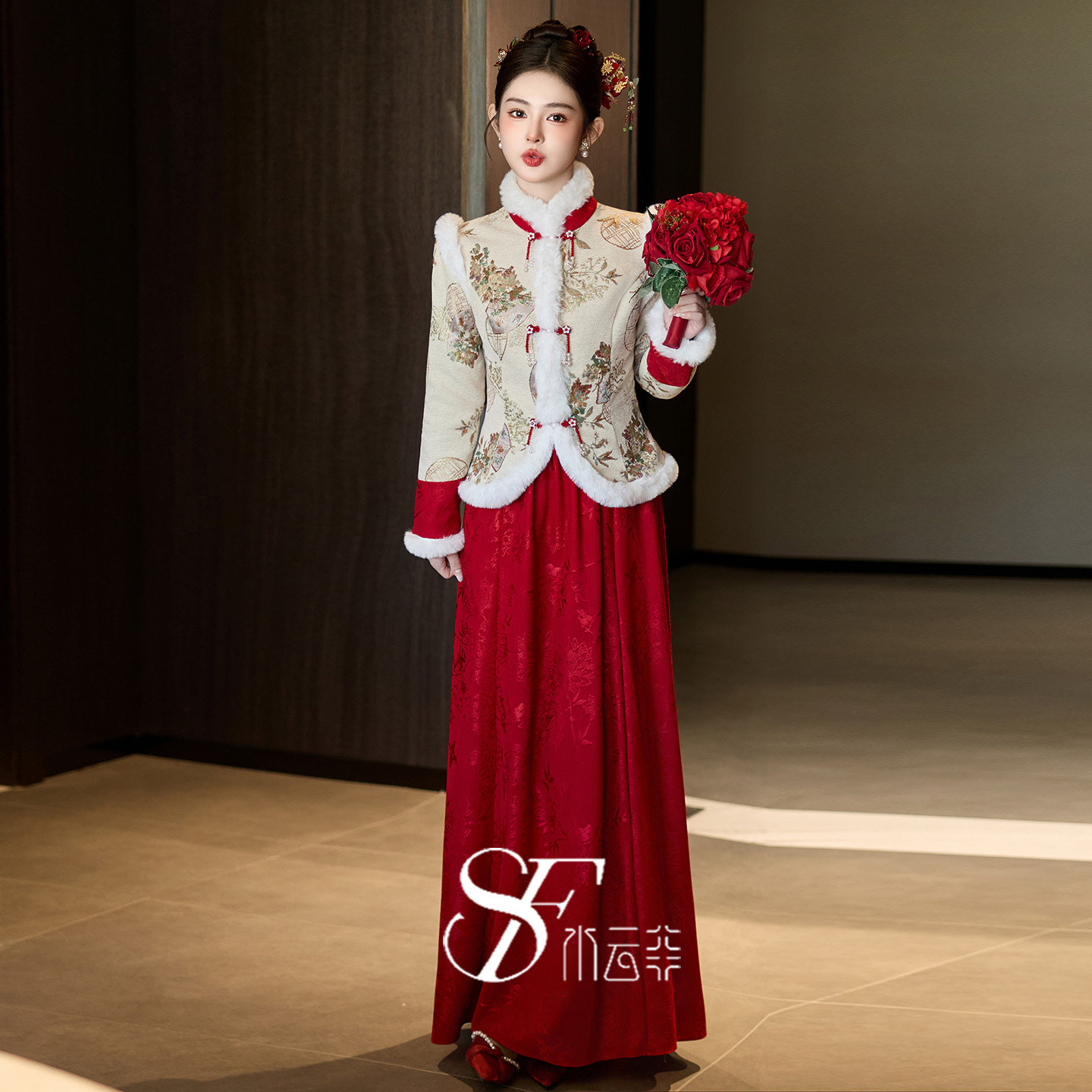 敬酒服新娘2025新款高级感冬装长袖厚款棉袄新中式国风订婚礼服女
