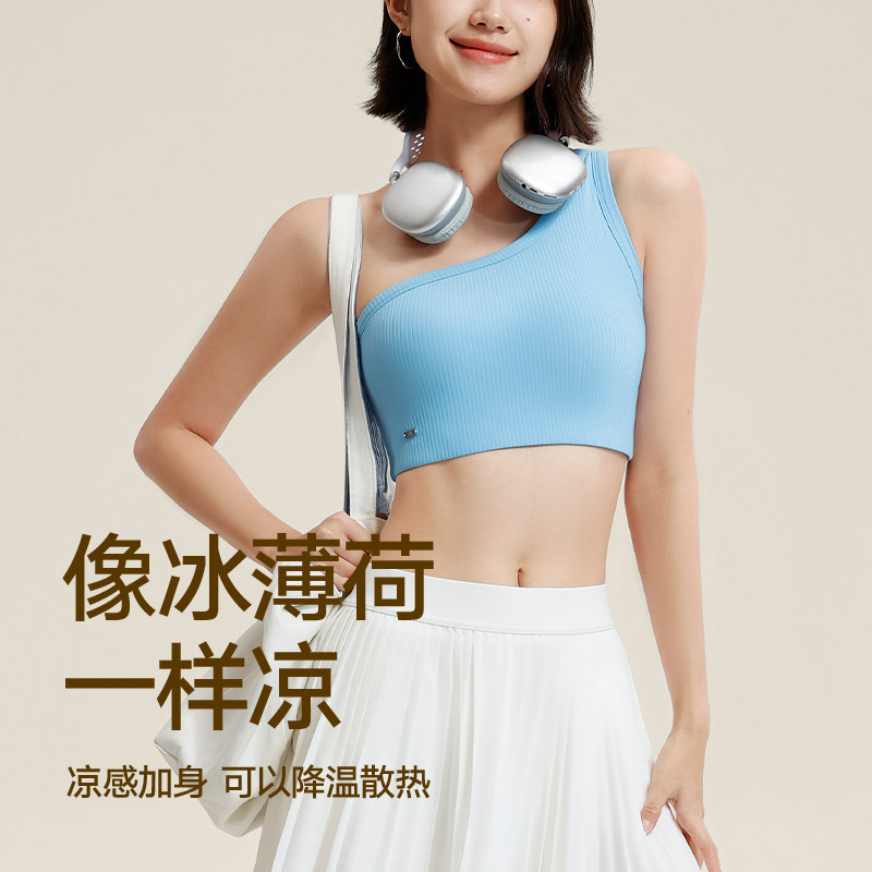 VfU斜挎单肩运动内衣中强度美背外穿背心透气瑜伽普拉提健身文胸